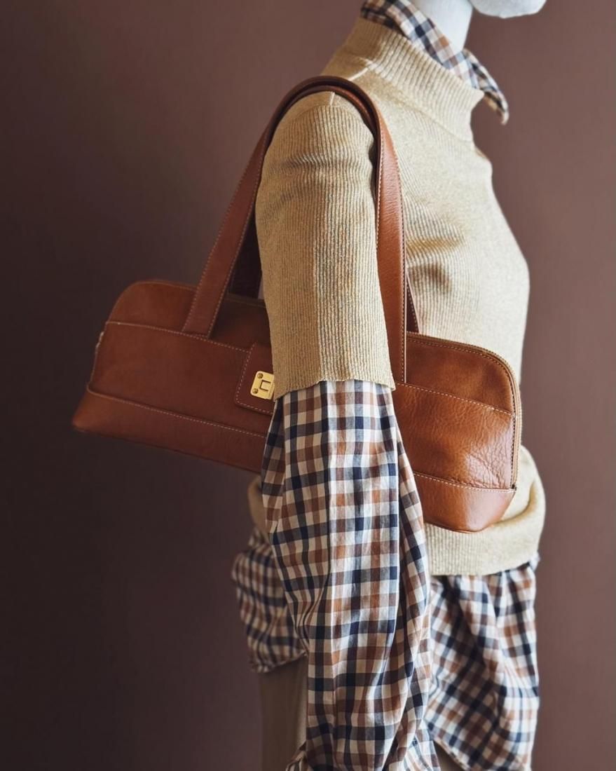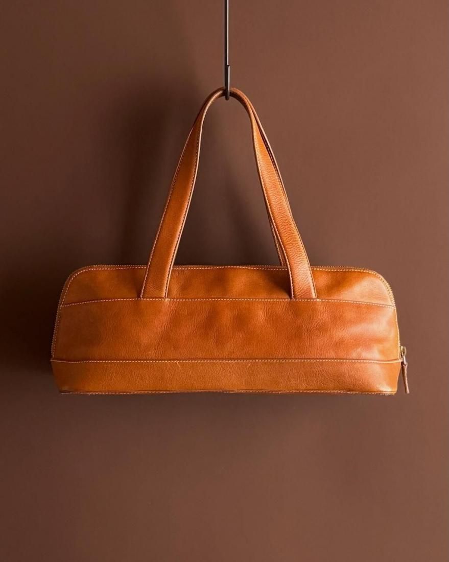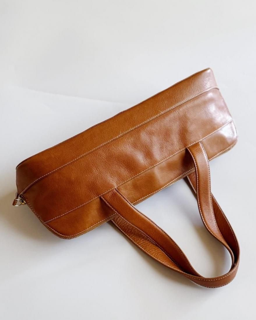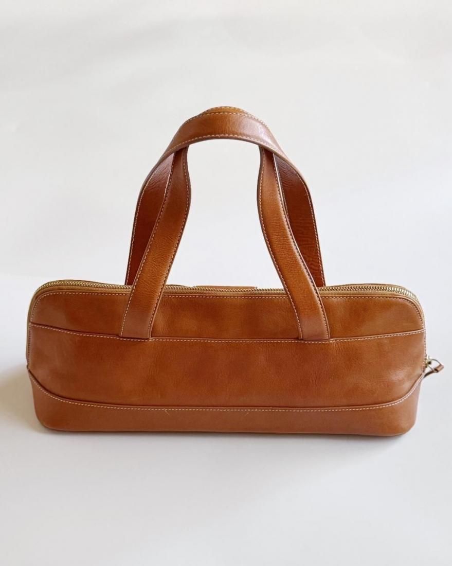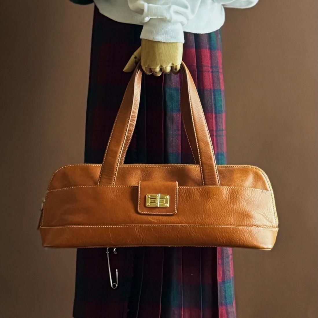 明るめのブラウンカラーと横長のシルエットがフランスパン!笑 みたいで可愛いレザートートバッグ。