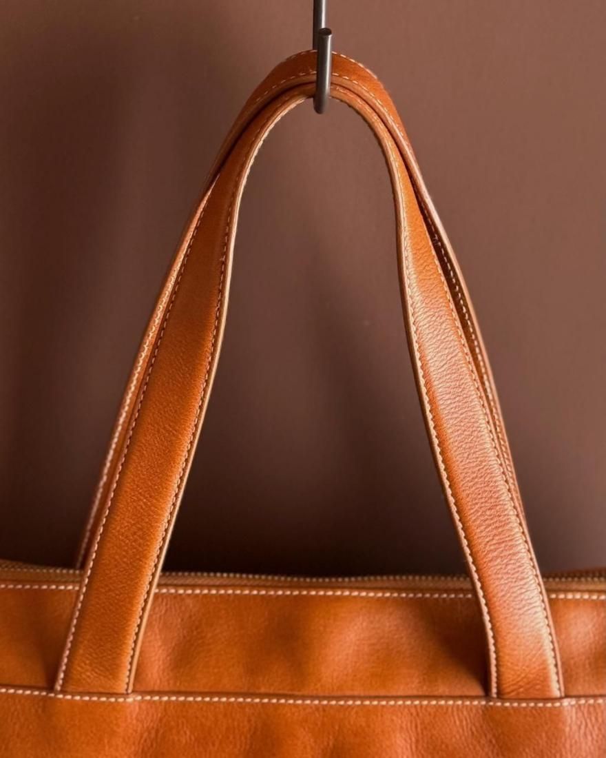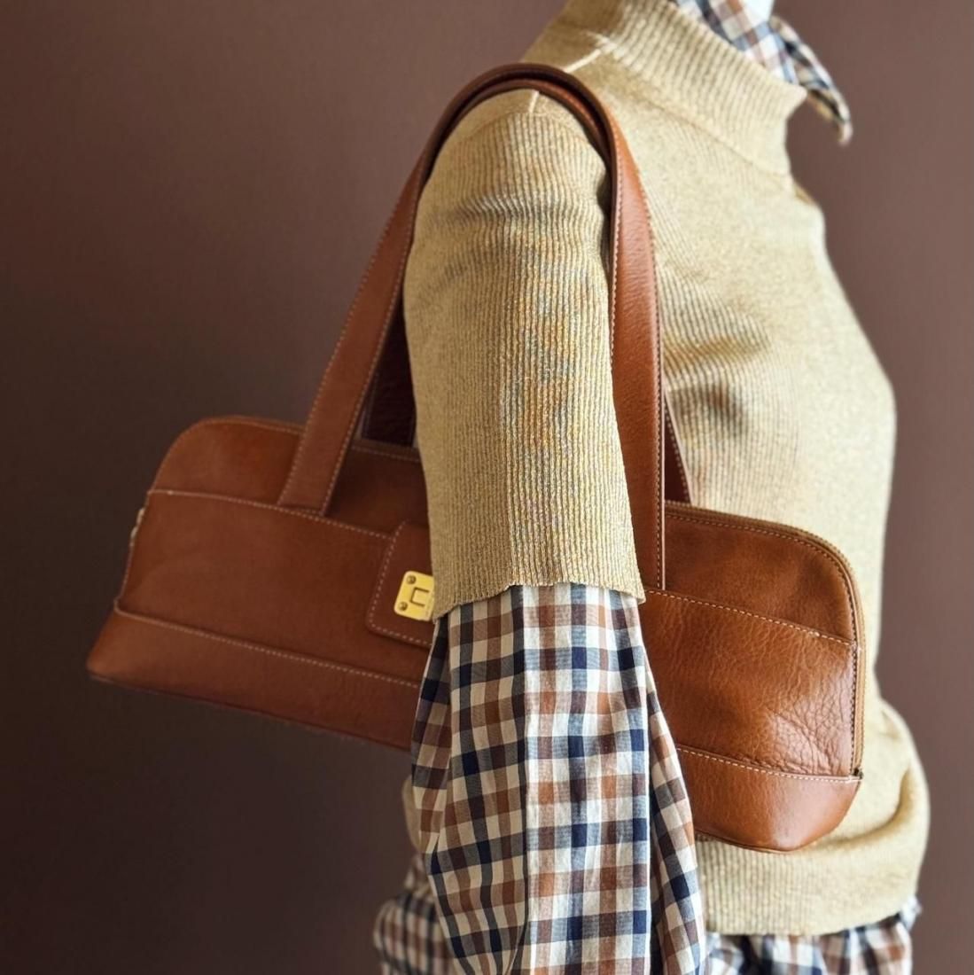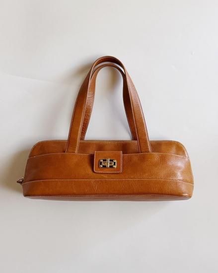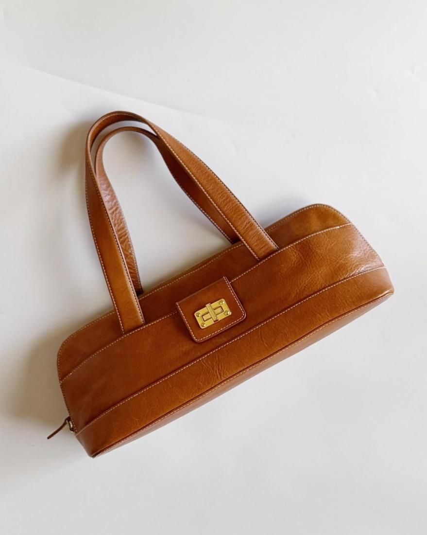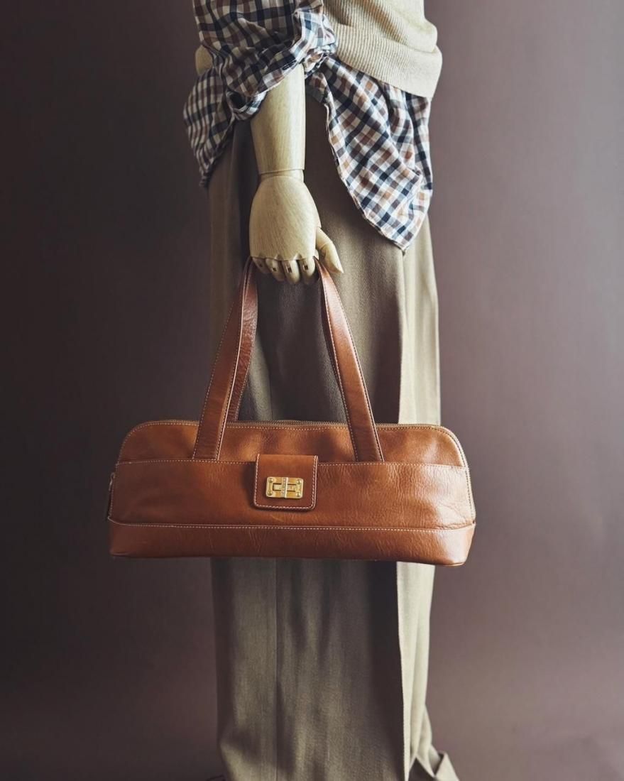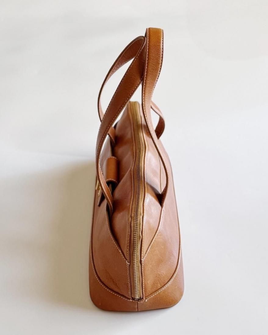 明るめのブラウンカラーと横長のシルエットがフランスパン!笑 みたいで可愛いレザートートバッグ。