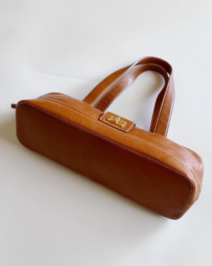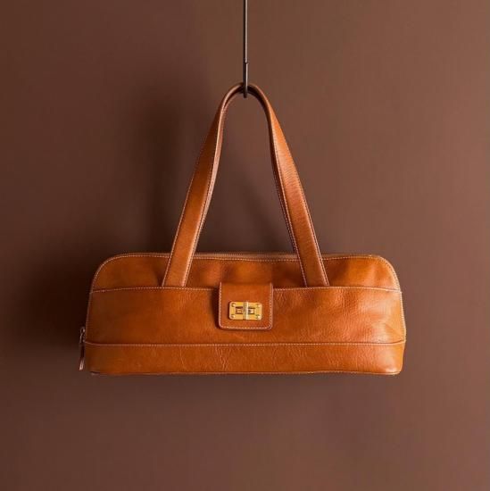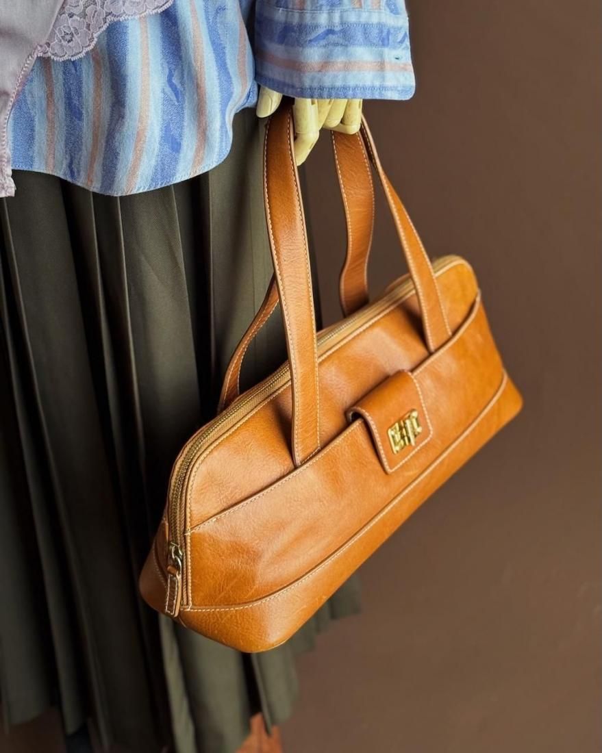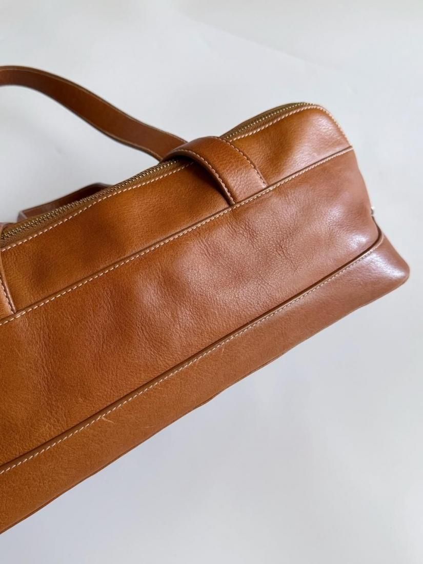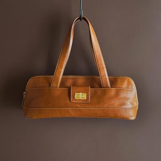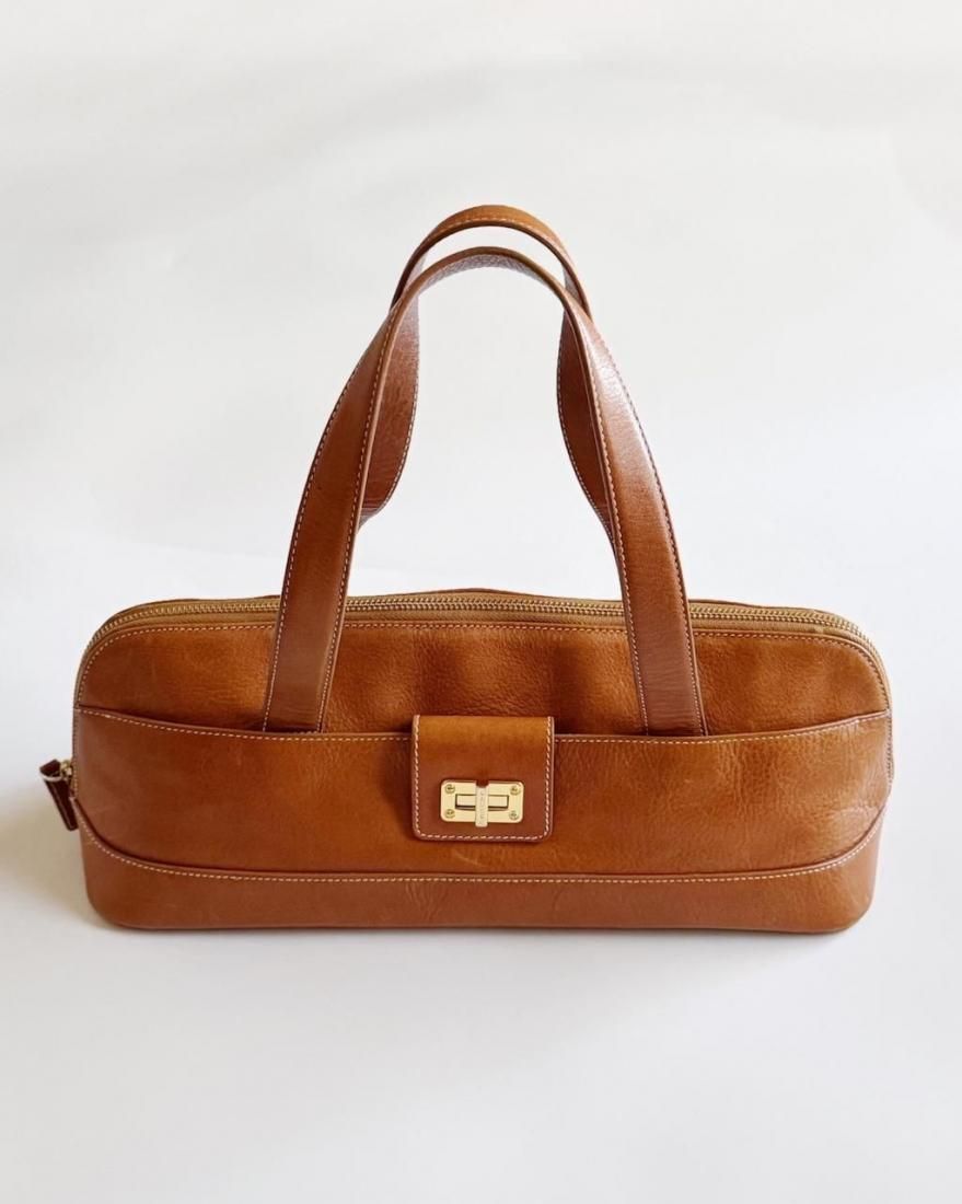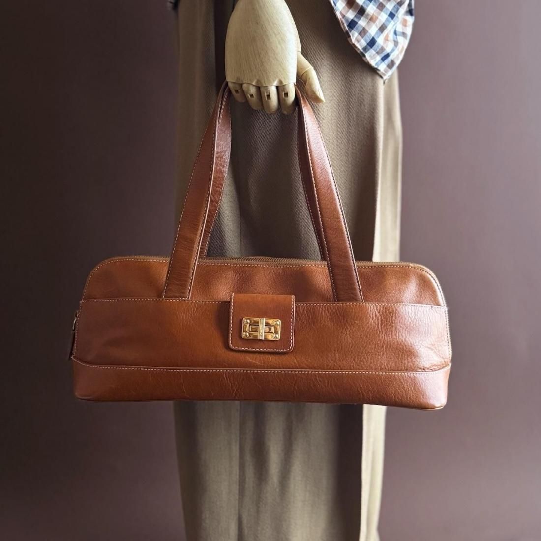 明るめのブラウンカラーと横長のシルエットがフランスパン!笑 みたいで可愛いレザートートバッグ。