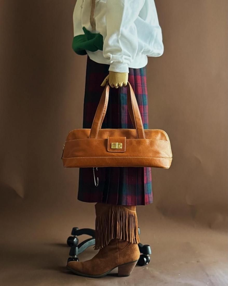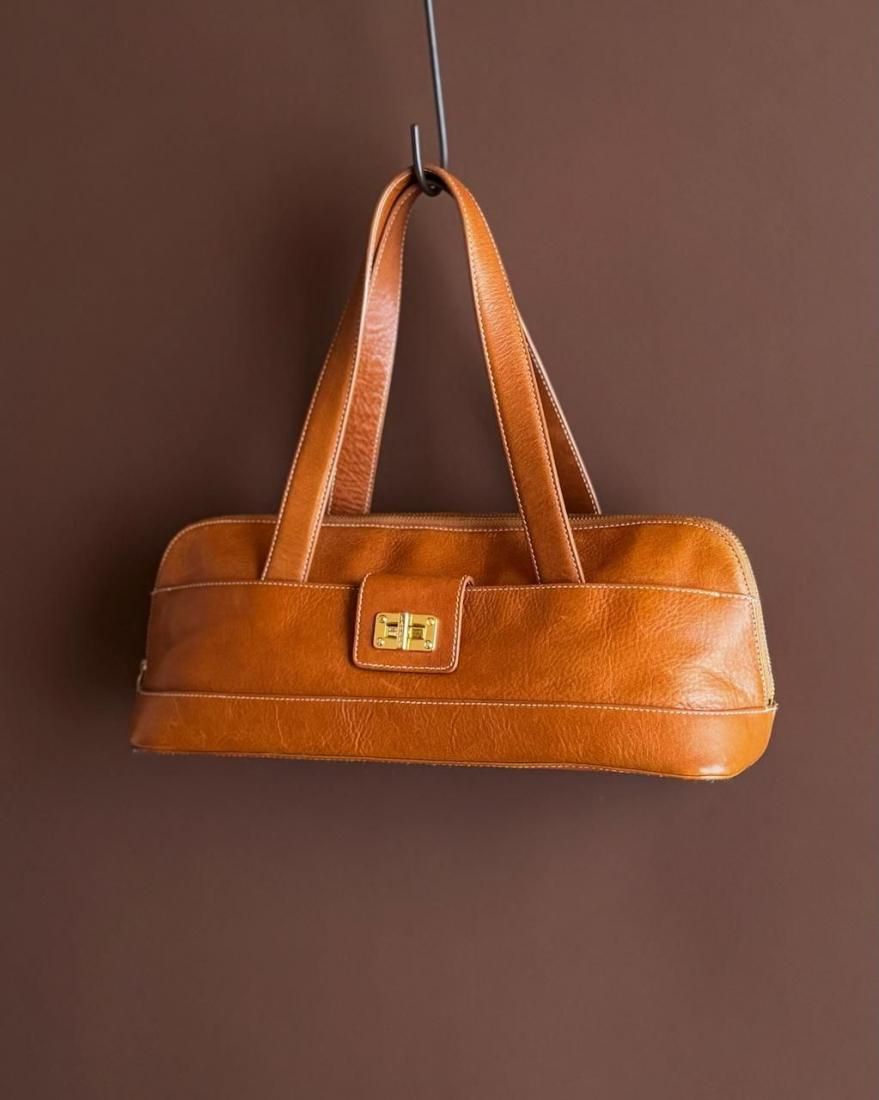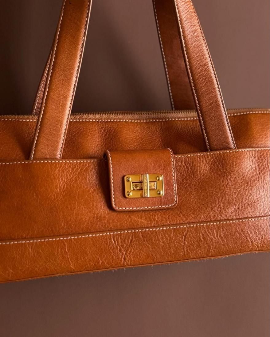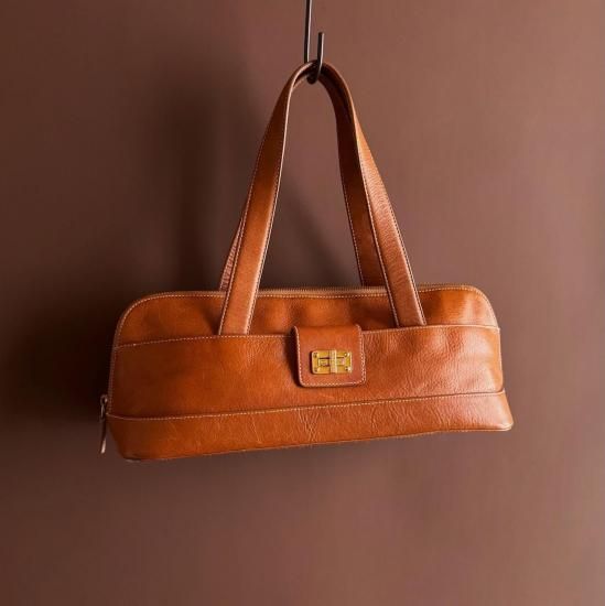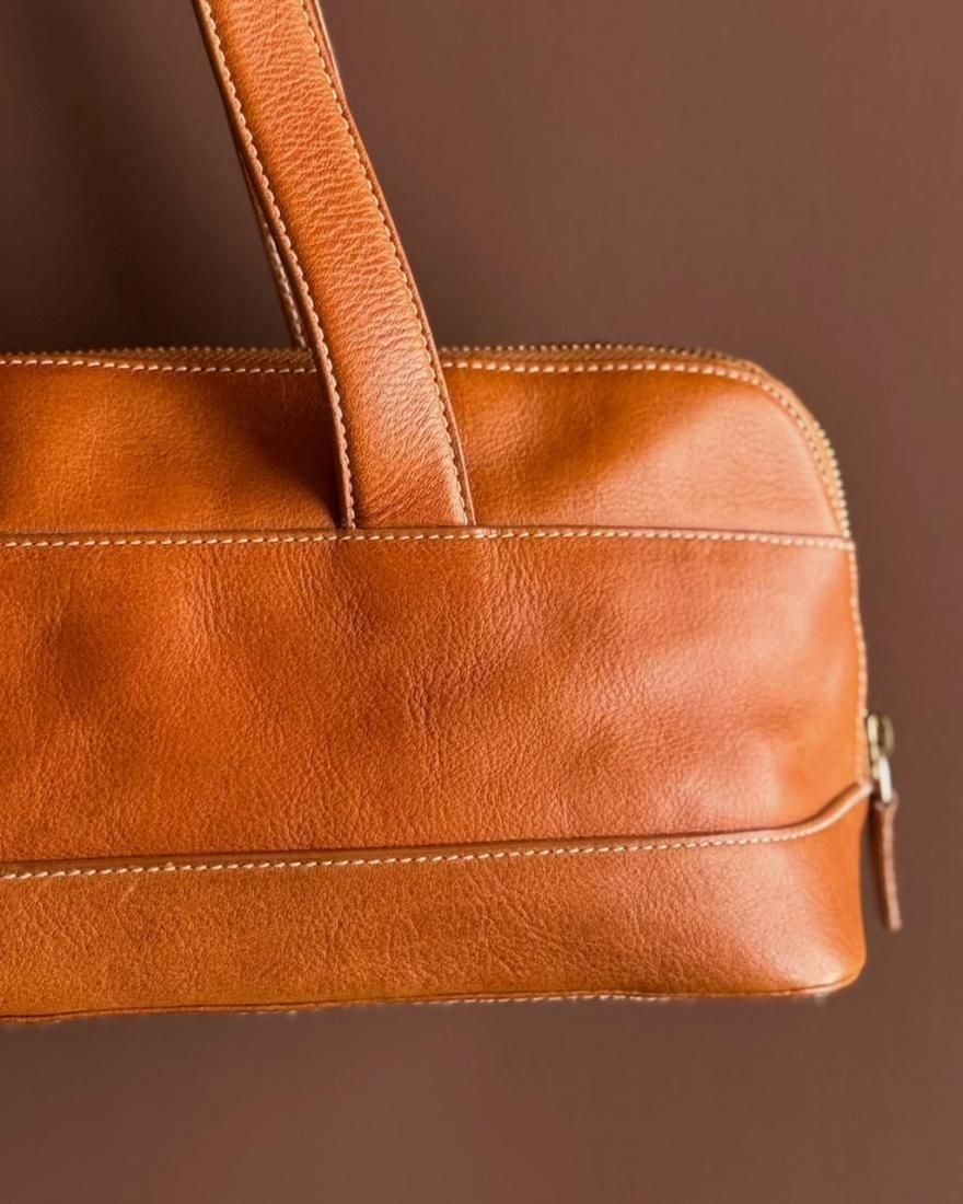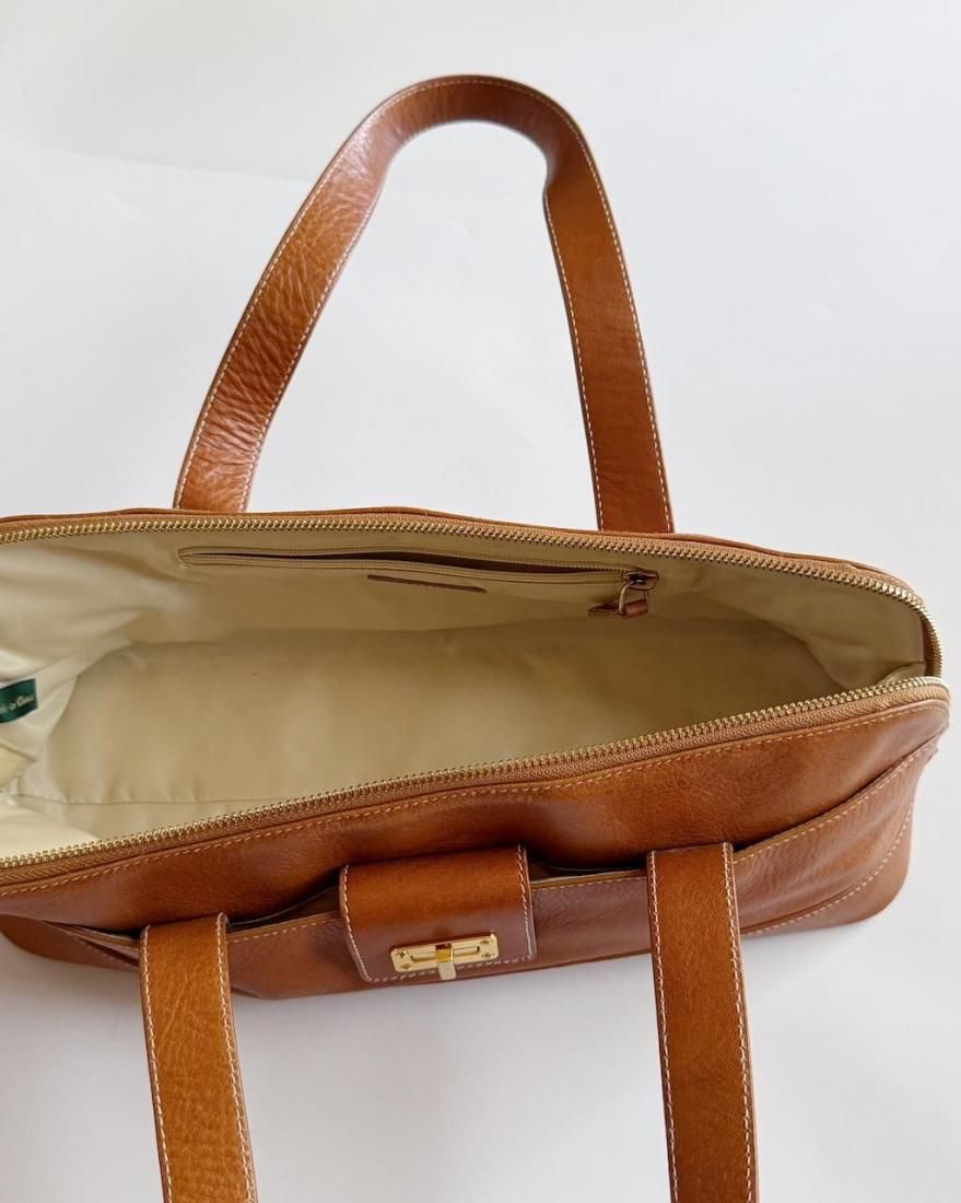 明るめのブラウンカラーと横長のシルエットがフランスパン!笑 みたいで可愛いレザートートバッグ。