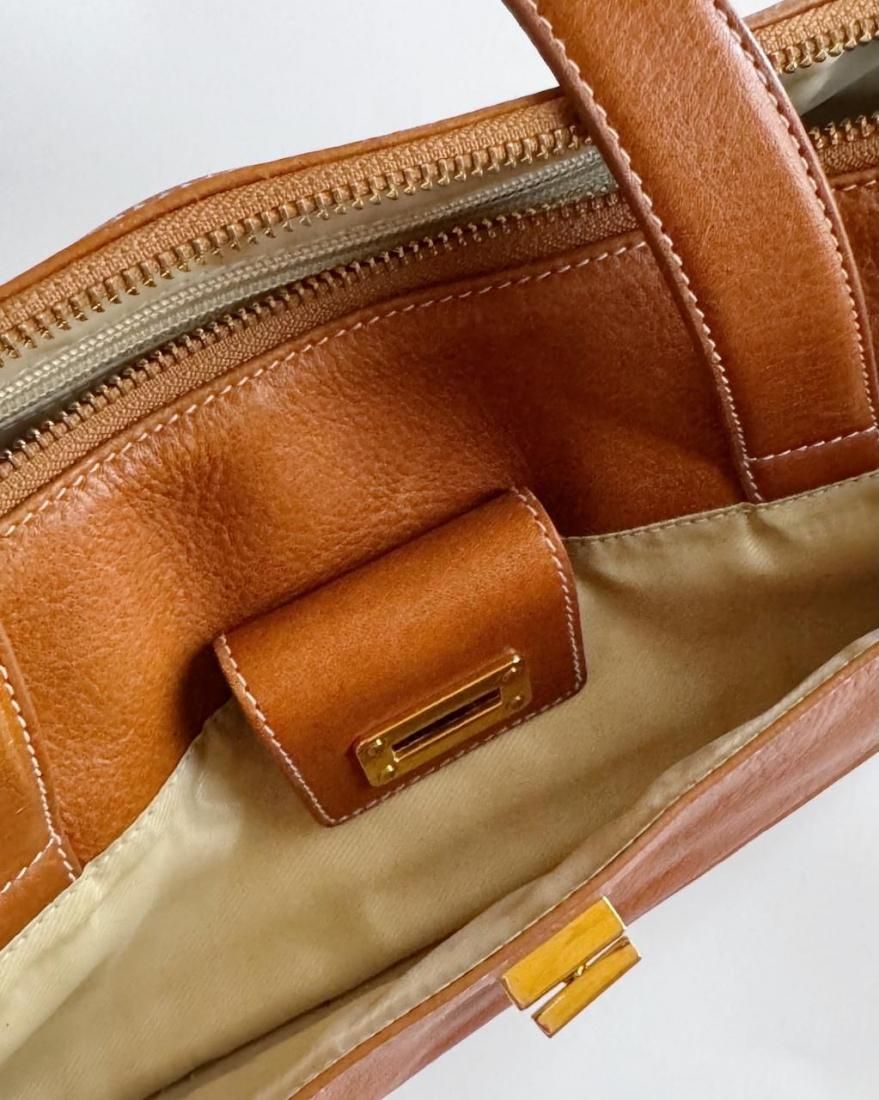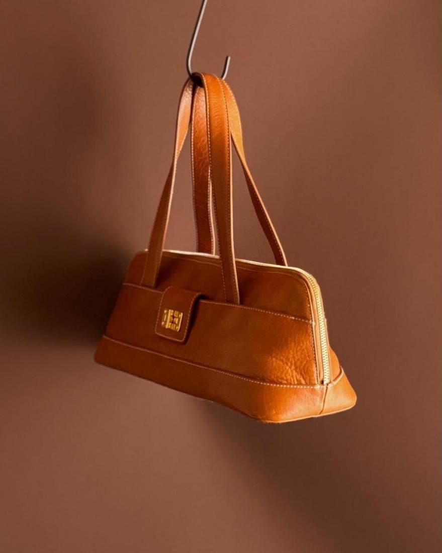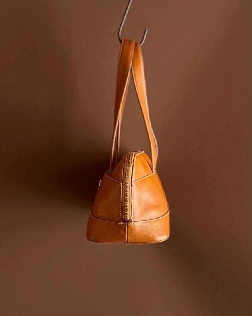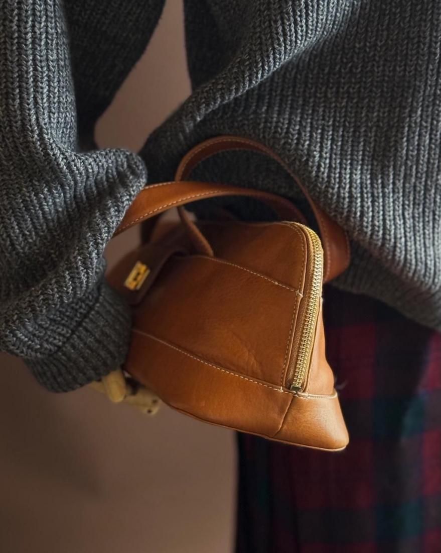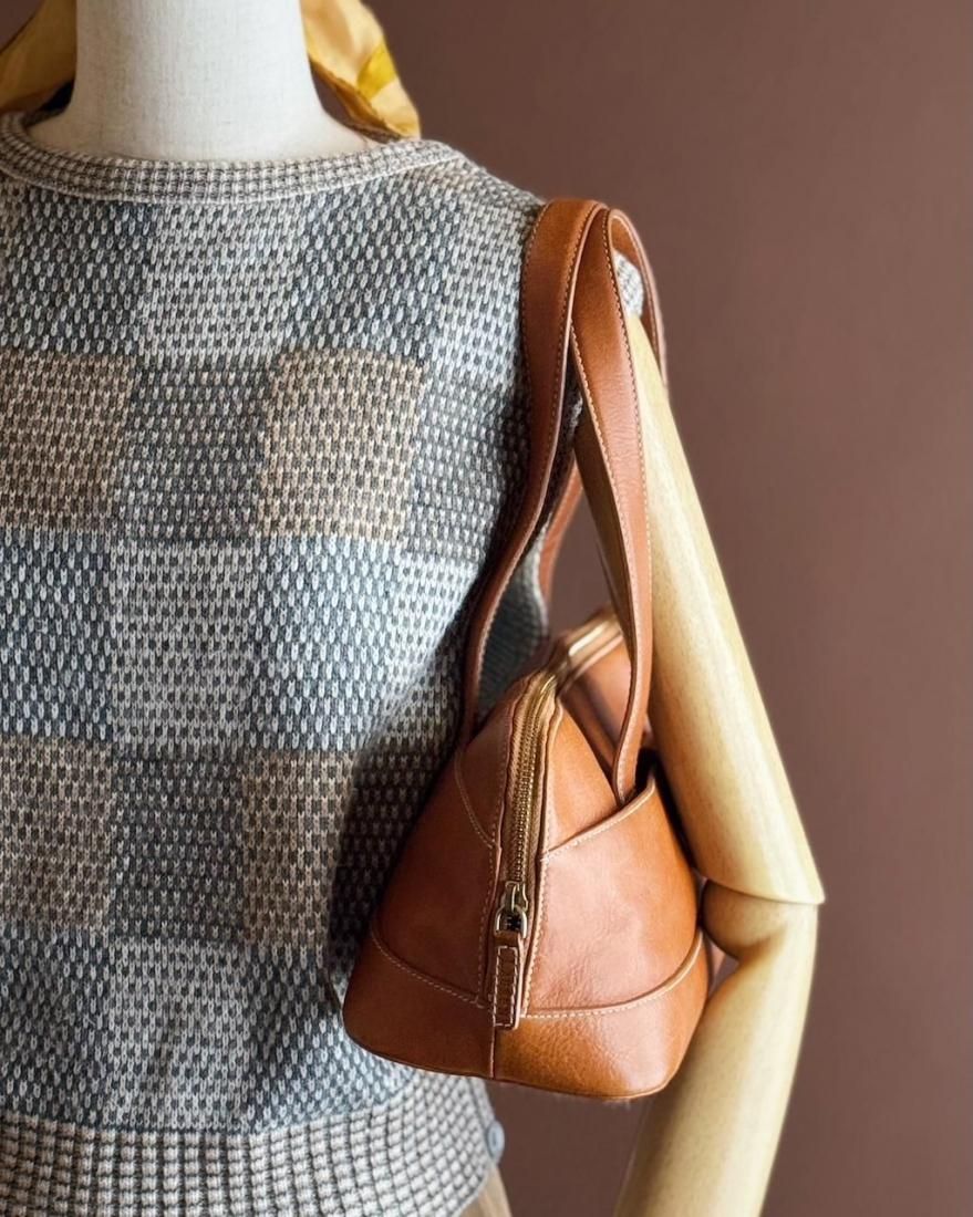 明るめのブラウンカラーと横長のシルエットがフランスパン!笑 みたいで可愛いレザートートバッグ。