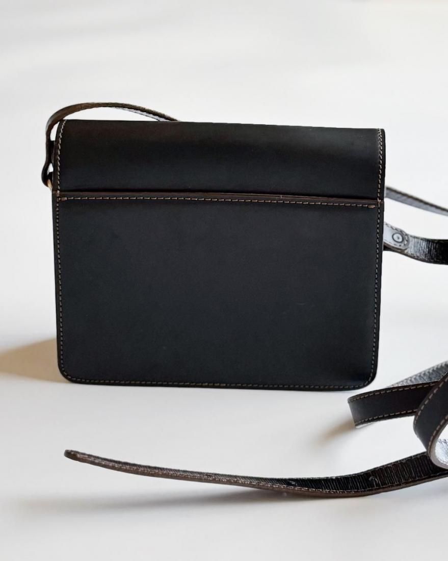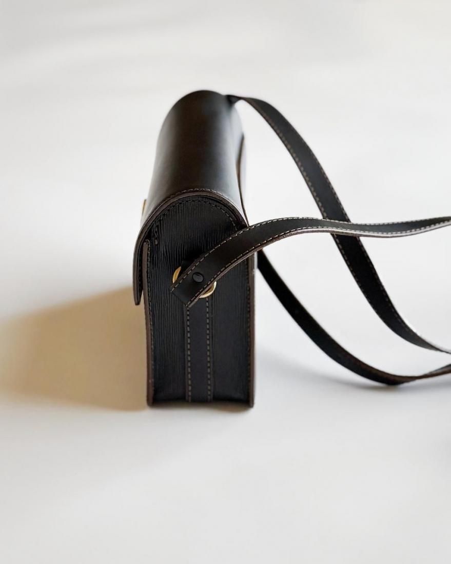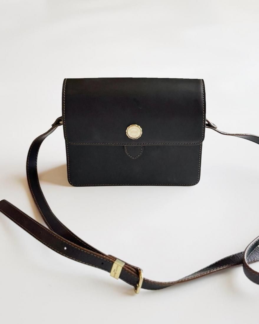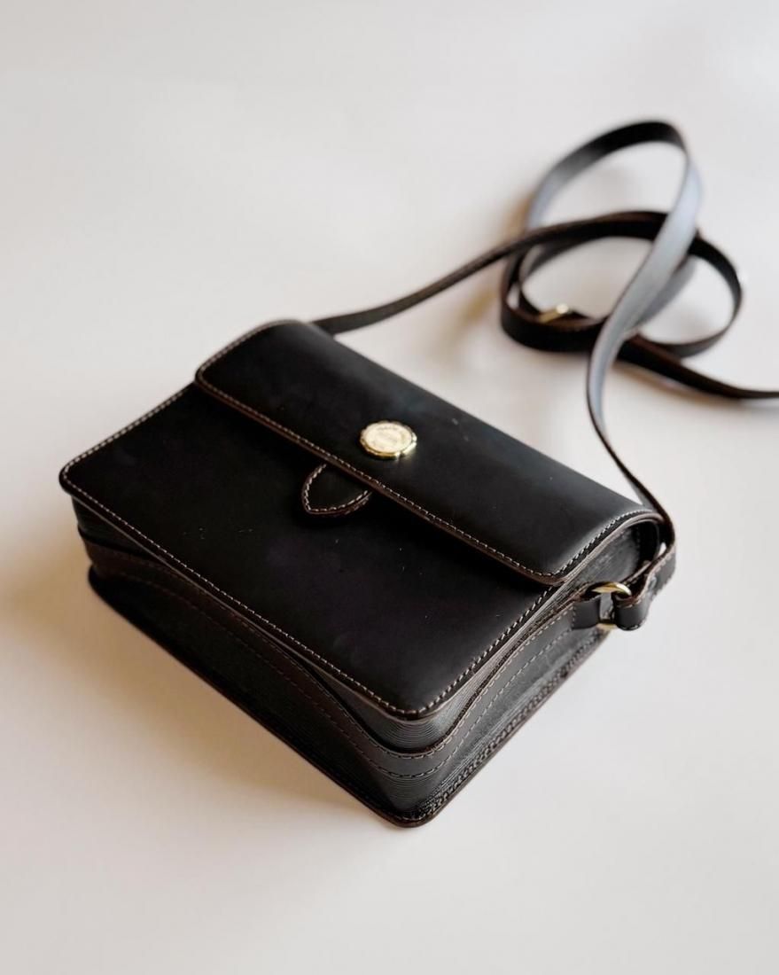 マットな質感とダークチョコレートみたいなこっくりとした深い色合いが魅力のヴィンテージショルダーバッグ。