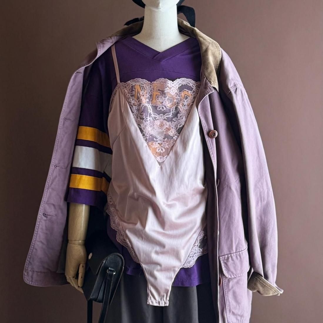メンズライクなアイテムだけど、あえてレースのボディスーツにレイヤードしたりMIXスタイルにするのも気分。