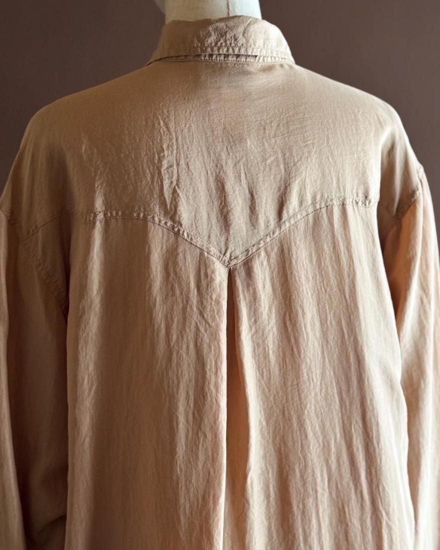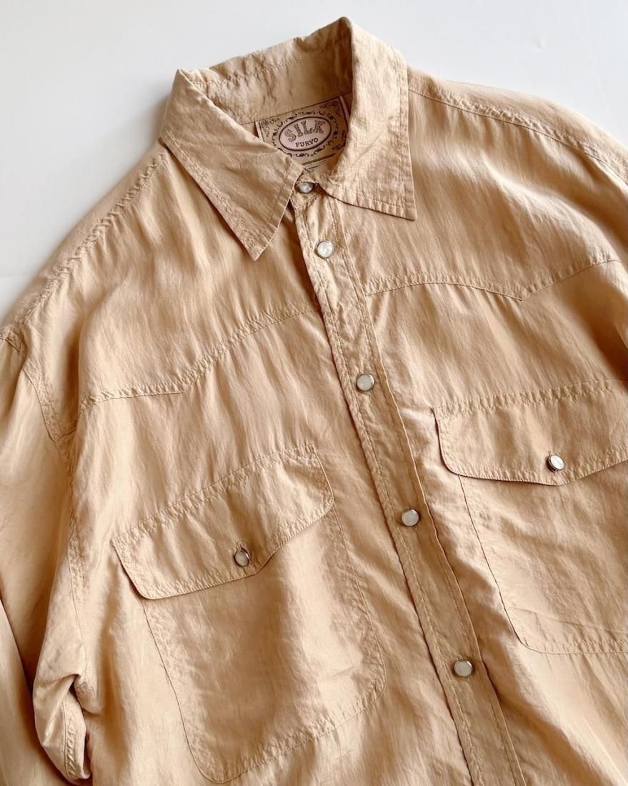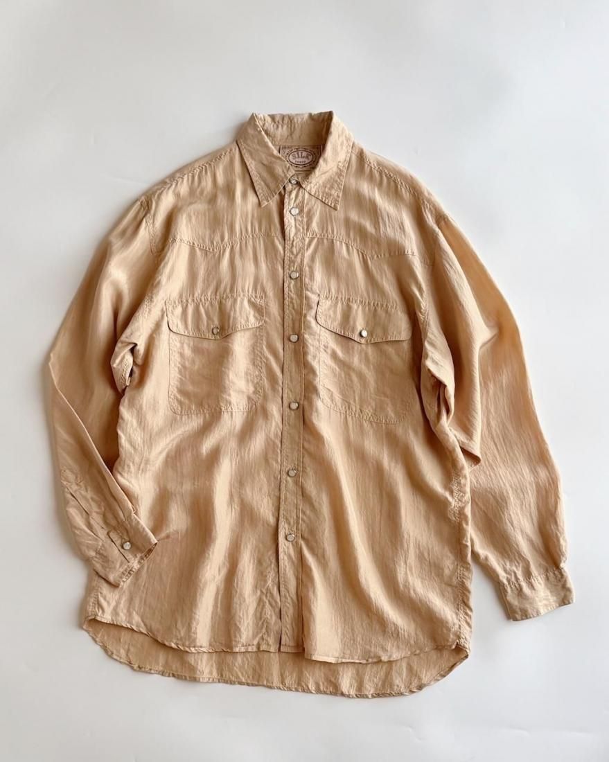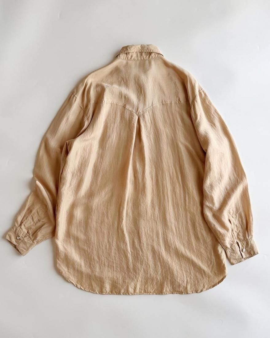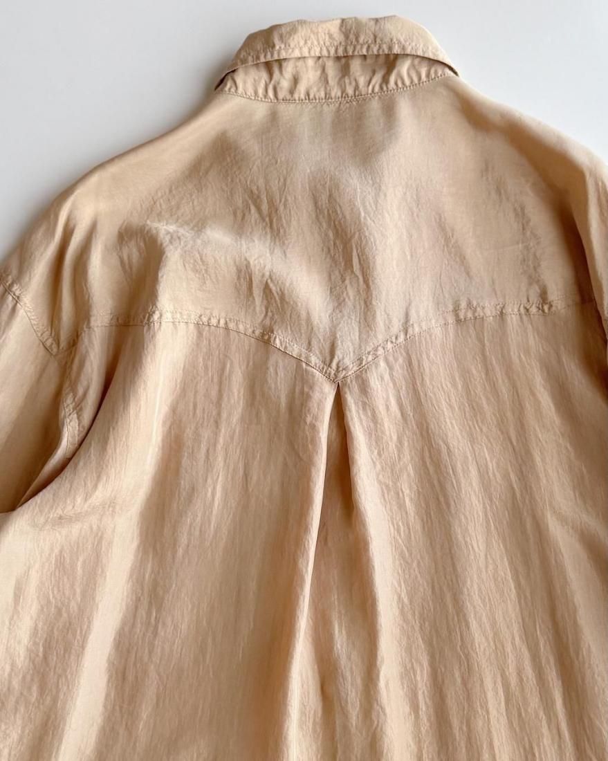 さらりとした少し光沢感のあるシルク独特の風合いが魅力のゆるりとしたウエスタンシャツ。