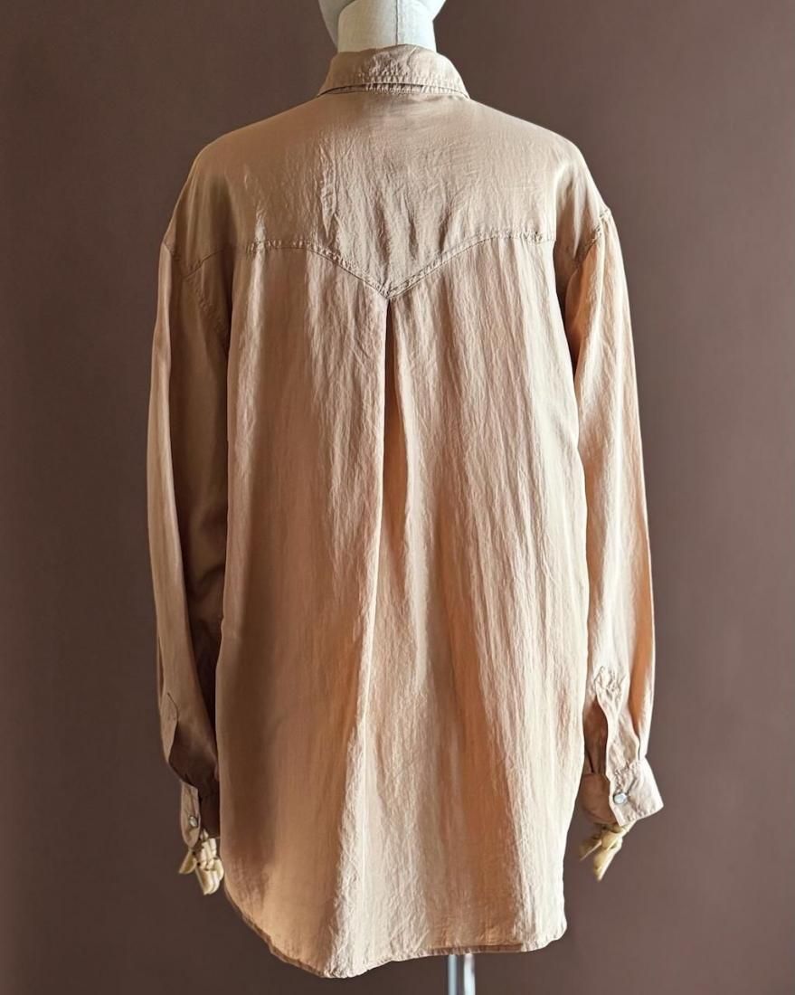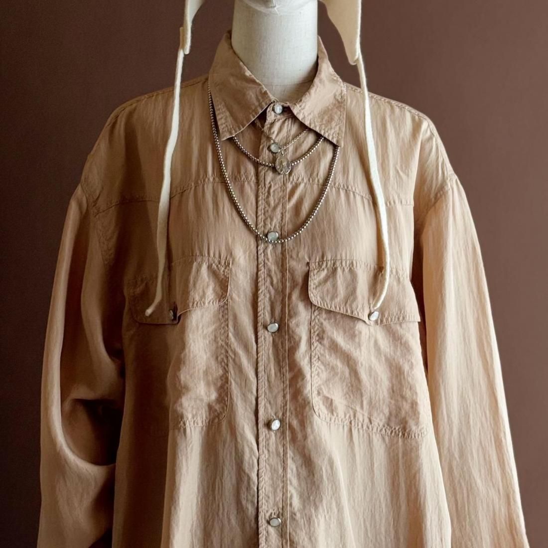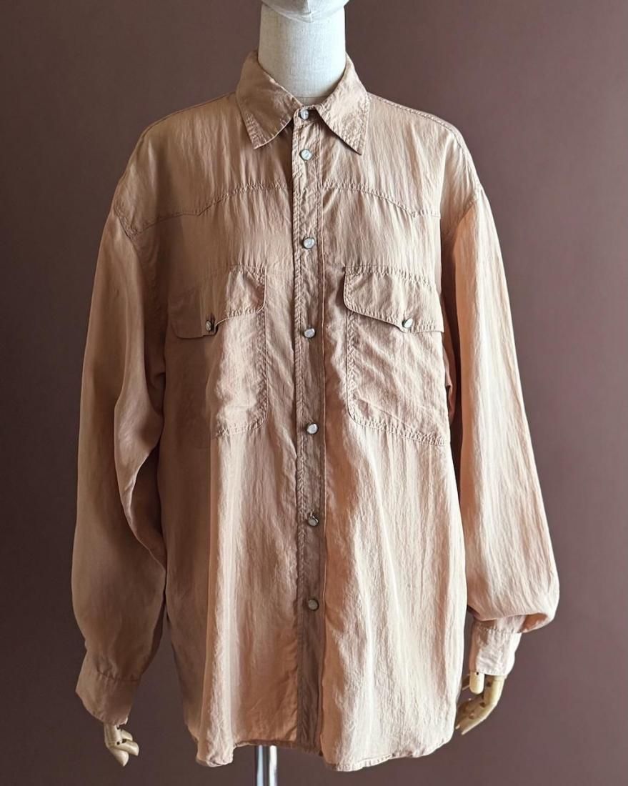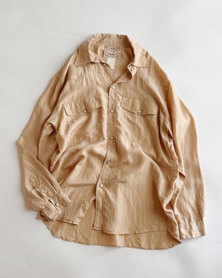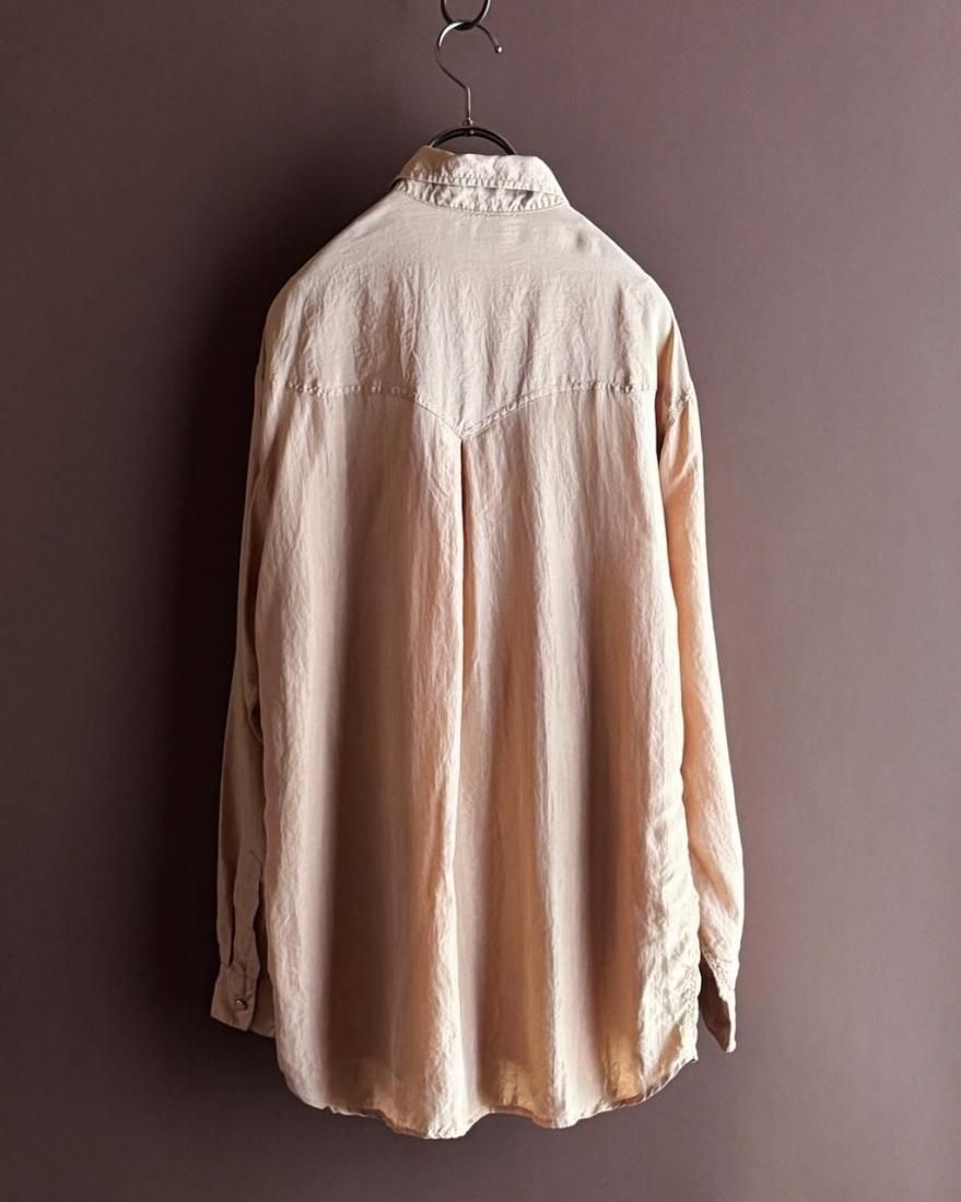 さらりとした少し光沢感のあるシルク独特の風合いが魅力のゆるりとしたウエスタンシャツ。