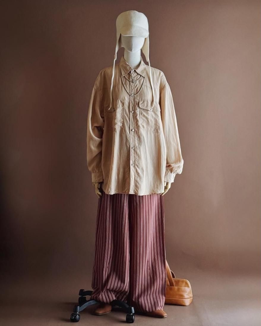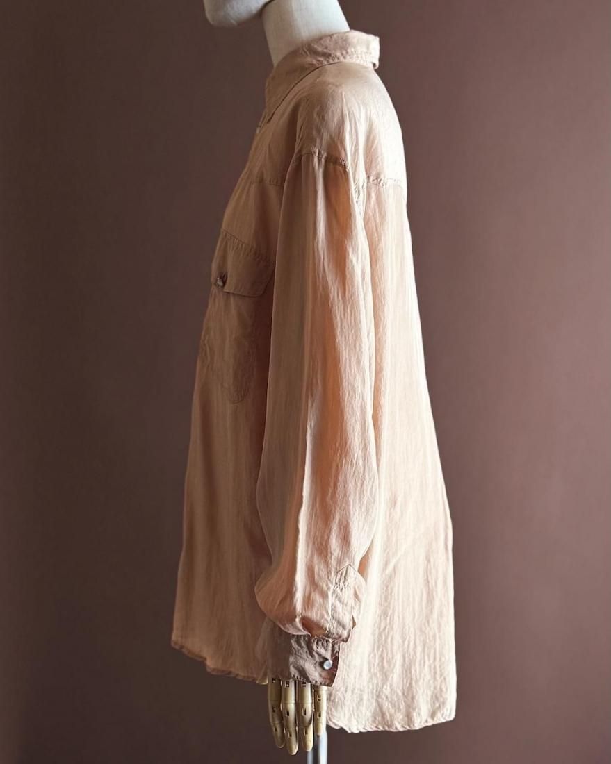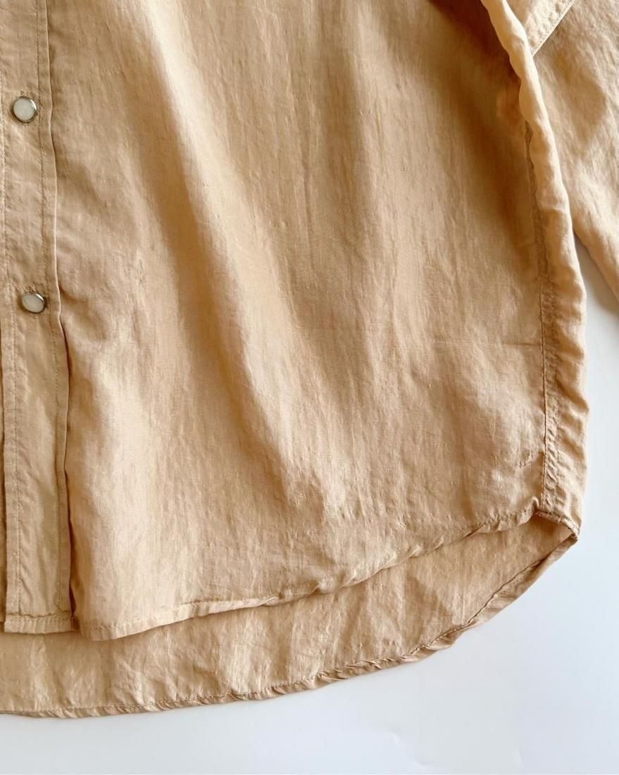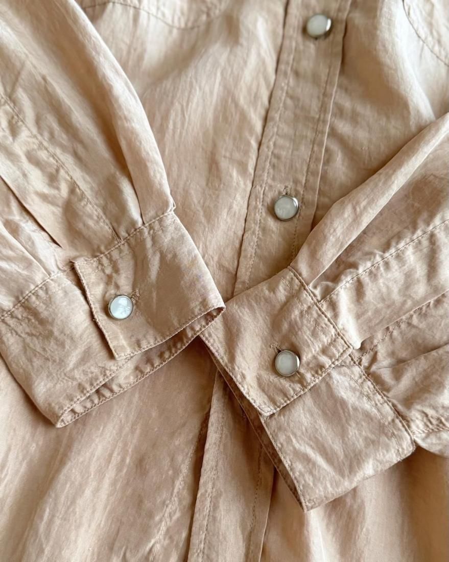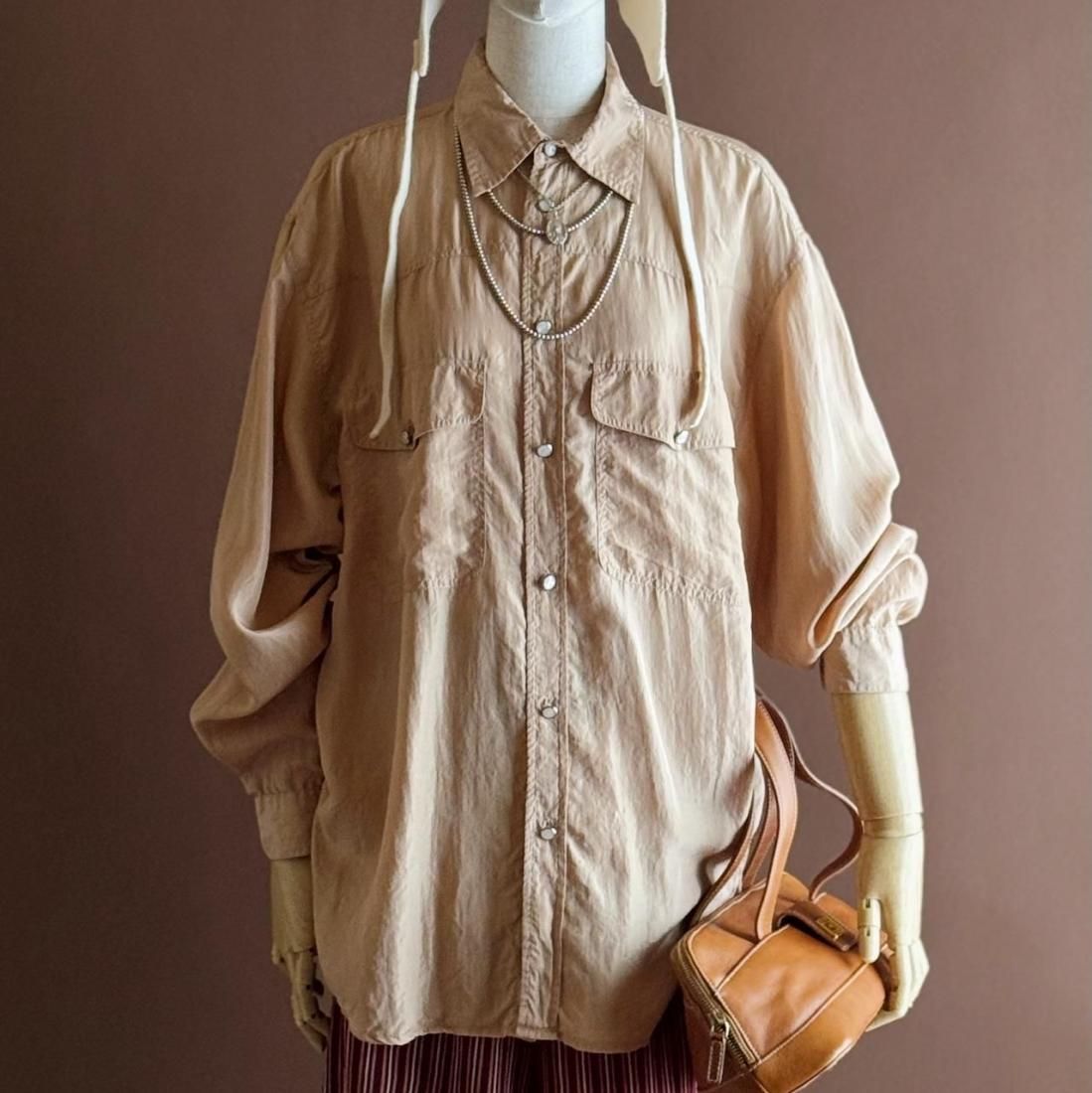 さらりとした少し光沢感のあるシルク独特の風合いが魅力のゆるりとしたウエスタンシャツ。