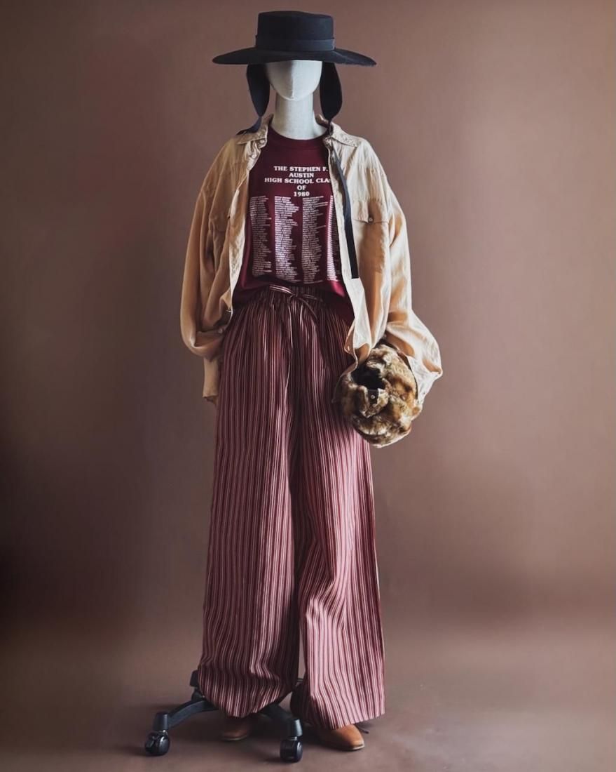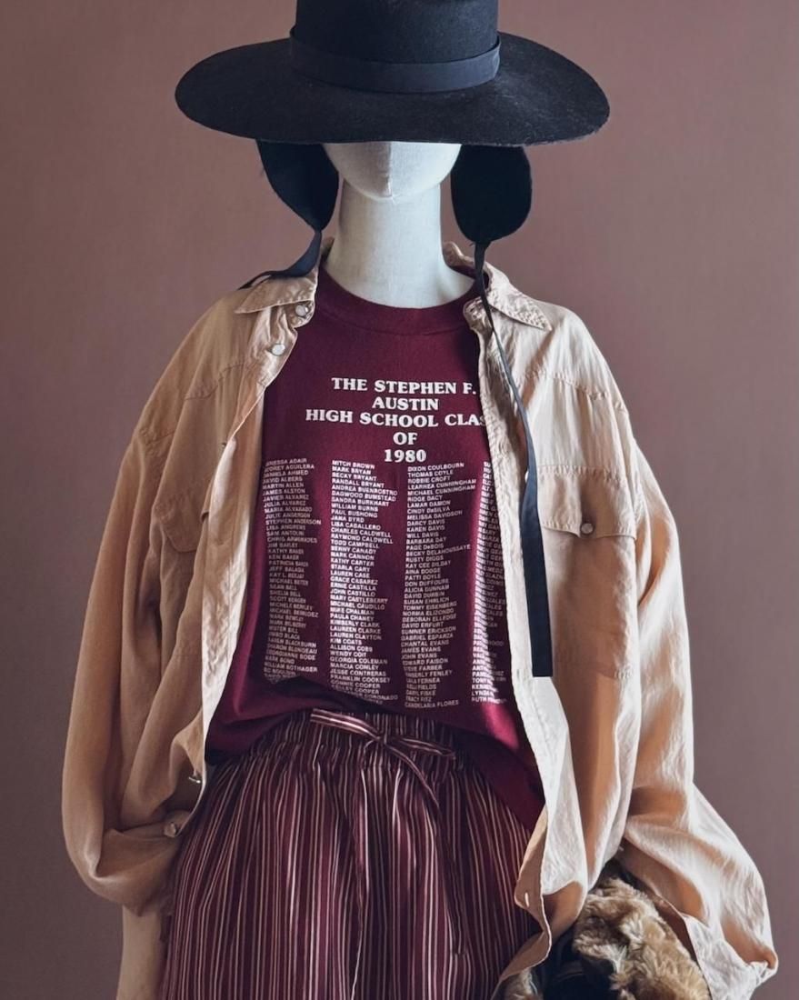 ウエスタンシャツというと、かっちりした風合いの襟がピン!としてるようなものが多いですが、こちらはゆるっとルーズに羽織る感じで着こなせる良い一枚です。