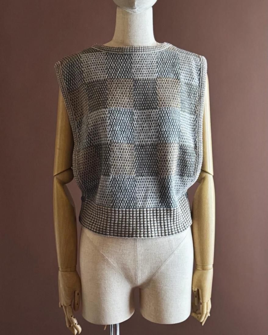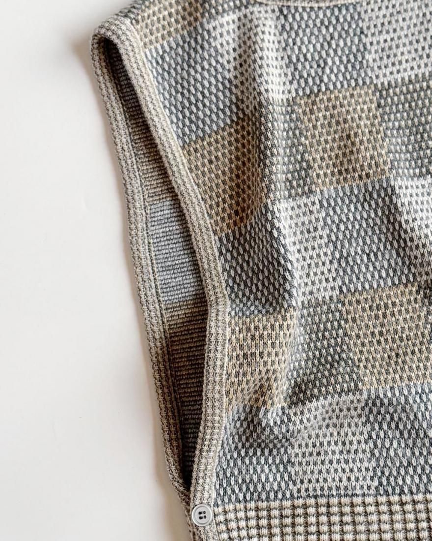 晩夏はノースリーブニットとして、秋が深まったらシャツやカットソーに重ねて。