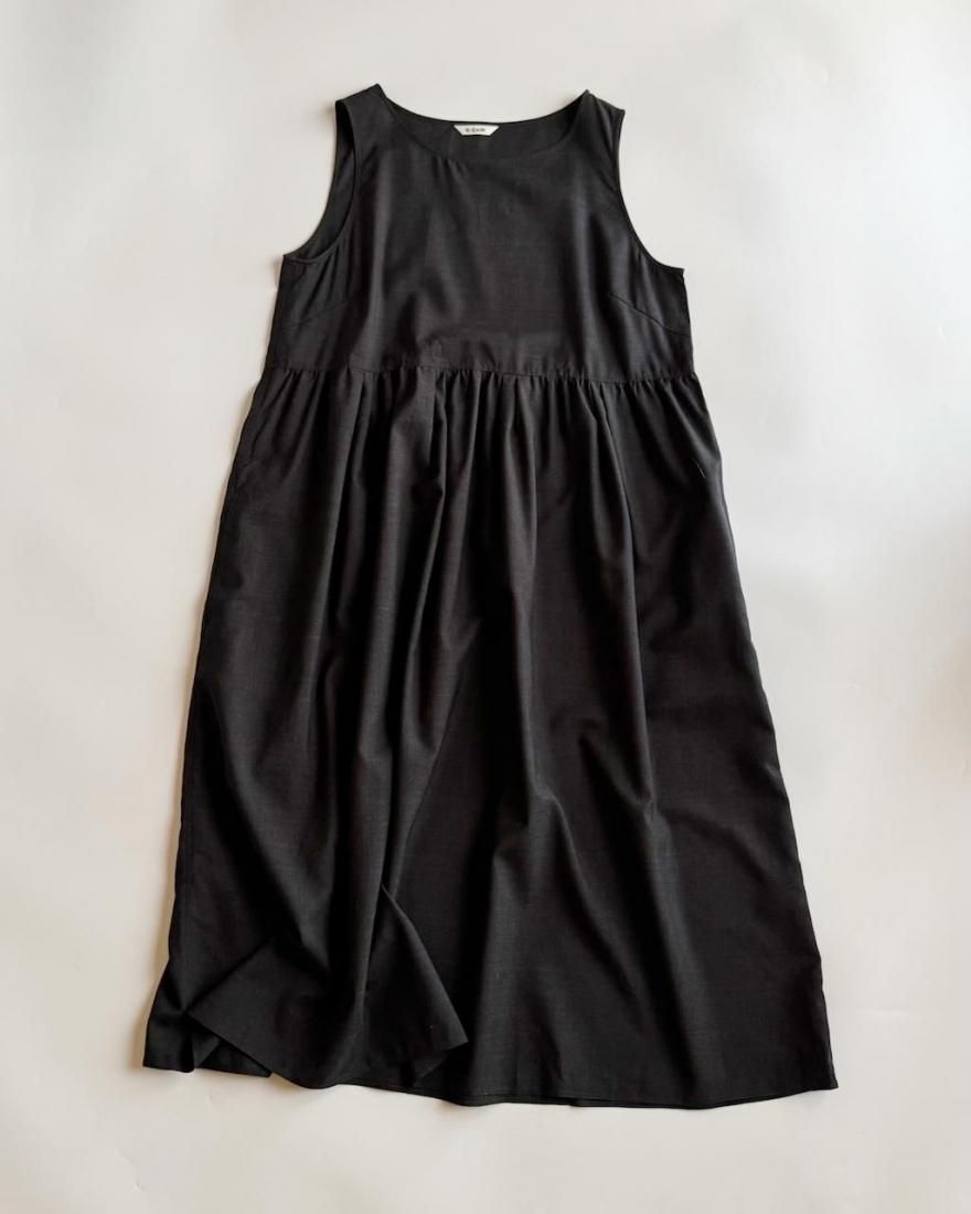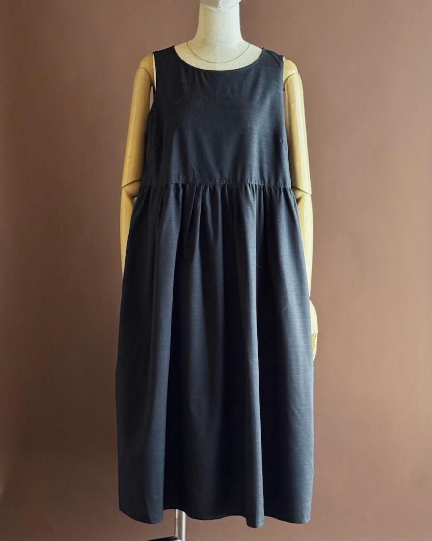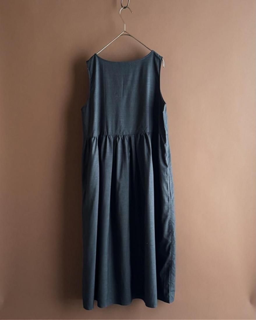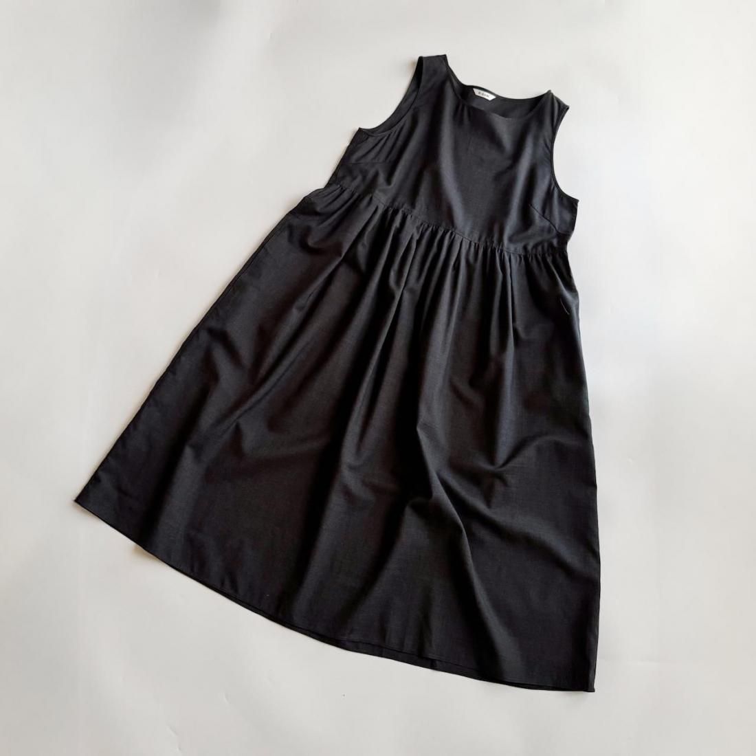 さらりとしたサマーウール素材のノースリーブワンピース。