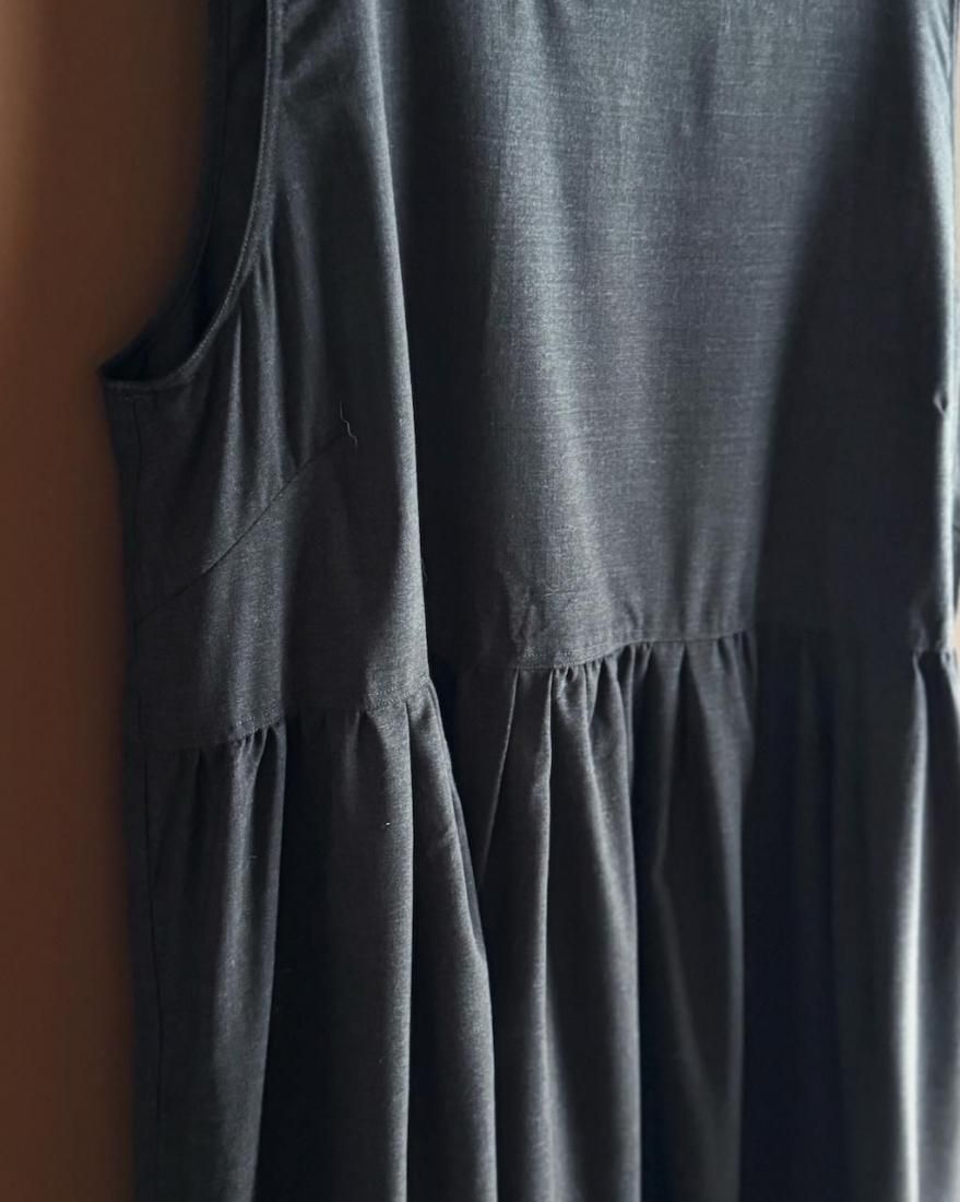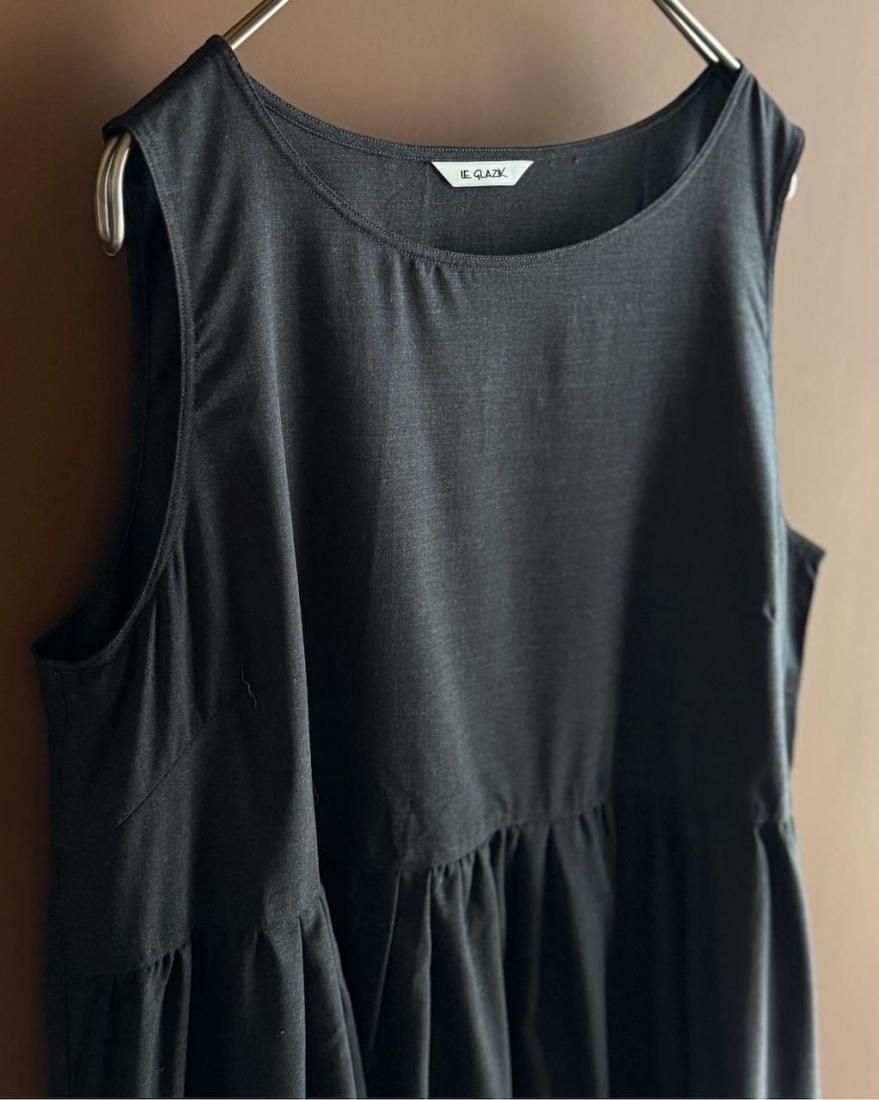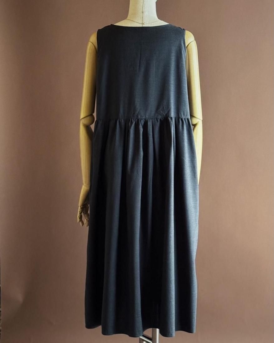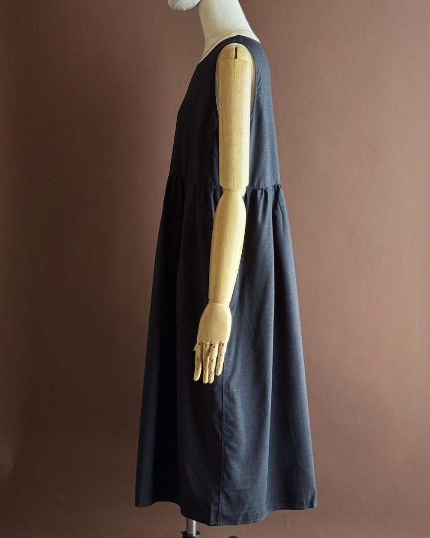 さらりとしたサマーウール素材のノースリーブワンピース。