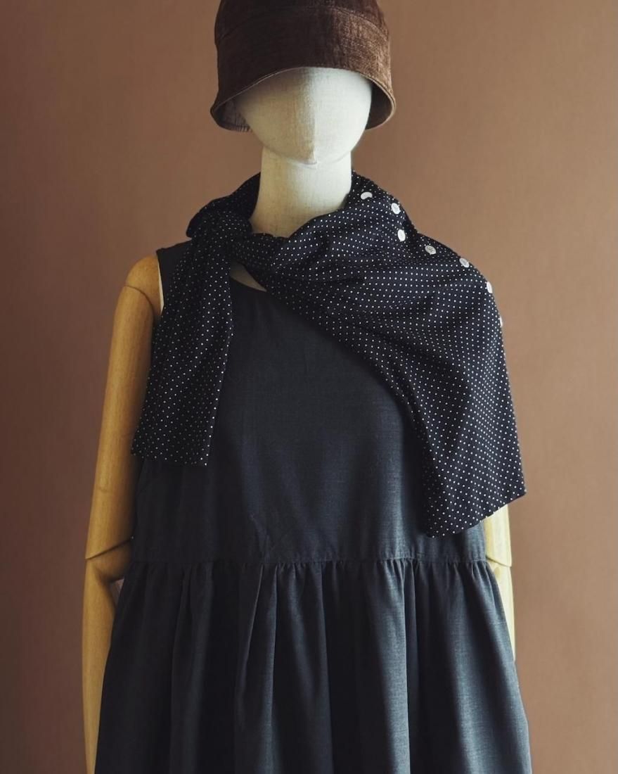 肩やウエストにくるりと巻いたり、ボタンを留めてカットソーとしてインナーにも。