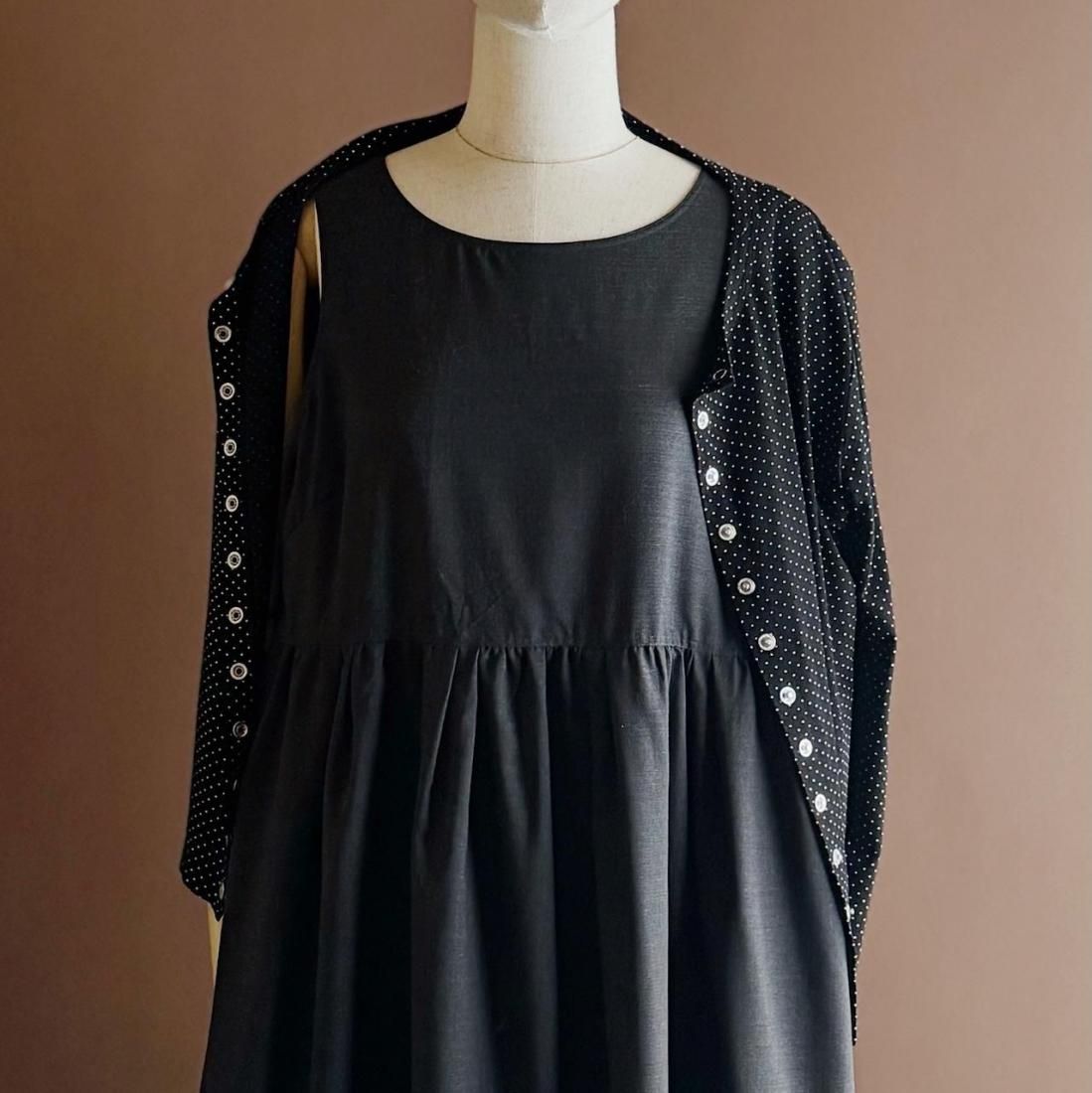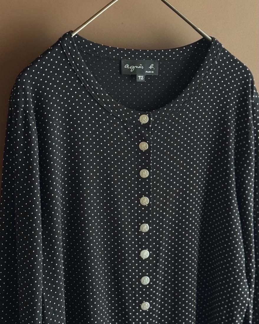 ブラックカラーに小さなドット、水玉模様がフレンチシックで素敵。