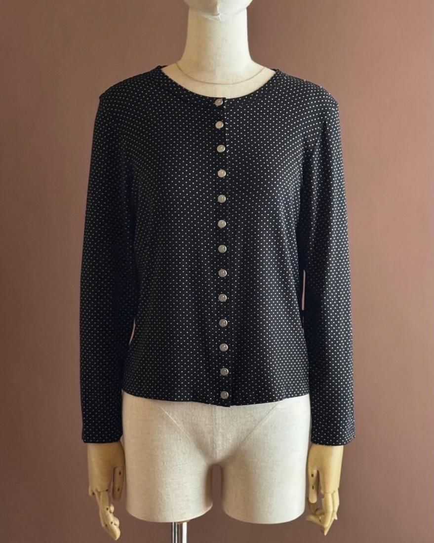 定番デザインのボタンのたくさん並んだ プレッションカーディガンのライト素材版。