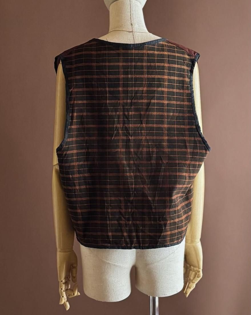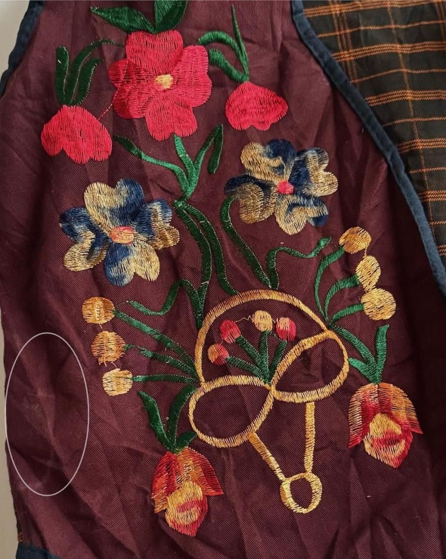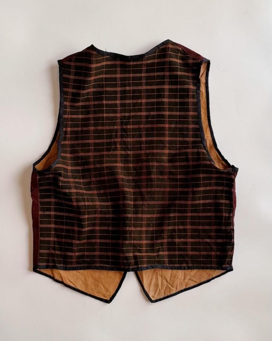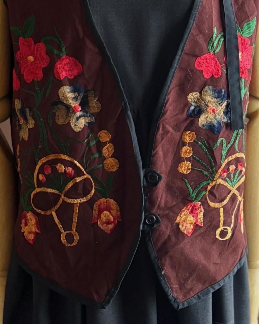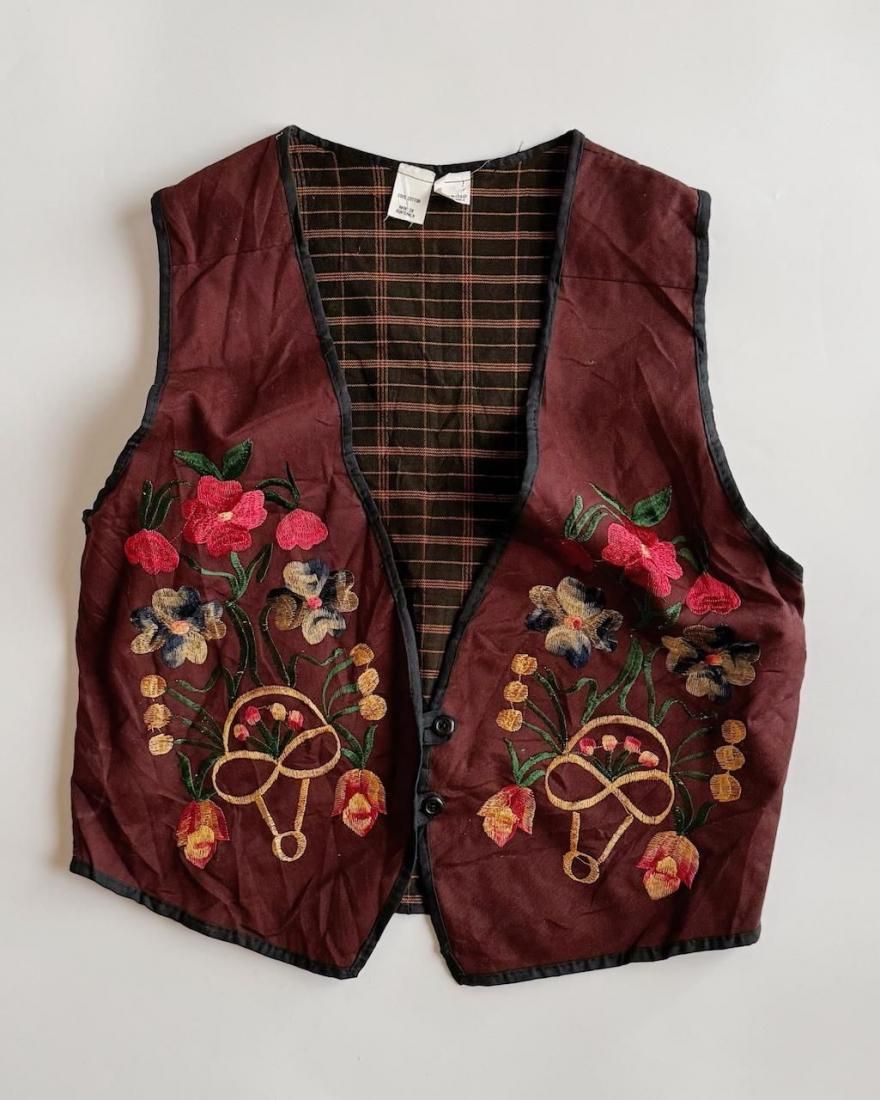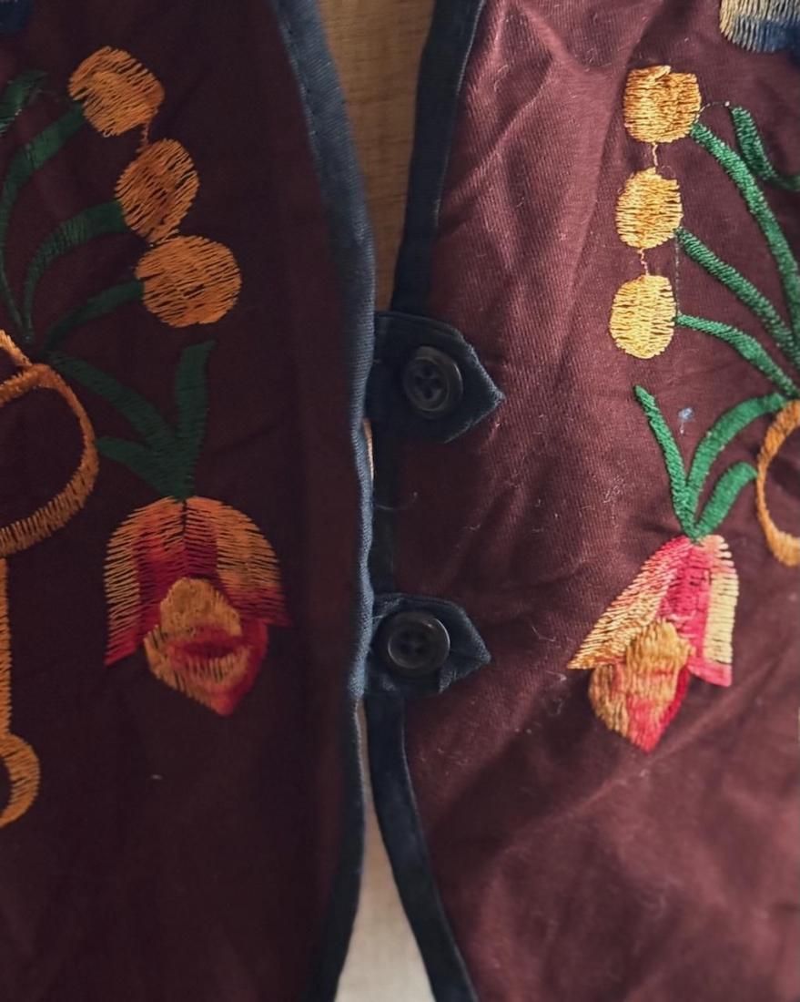 シックなダークブラウンカラーベースにお花刺繍が施されたベスト。