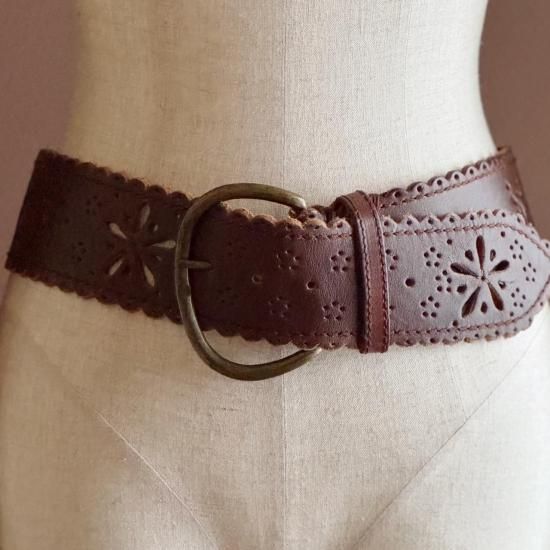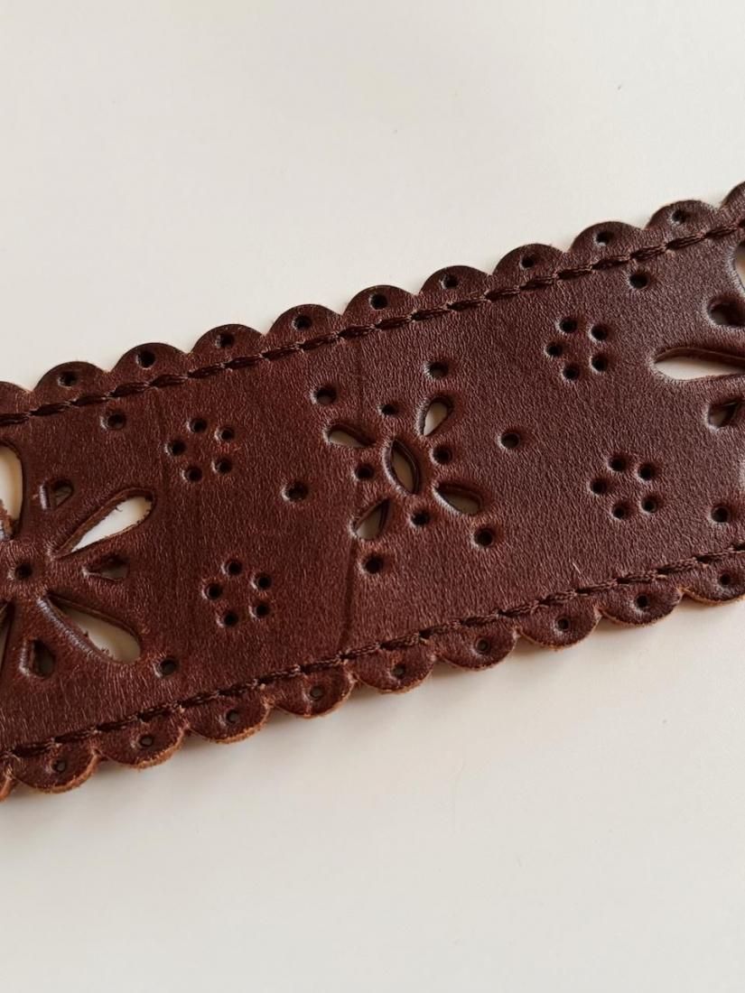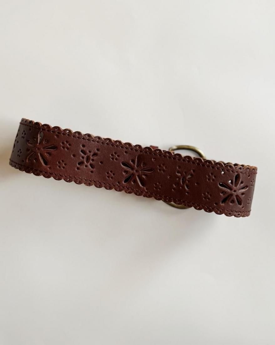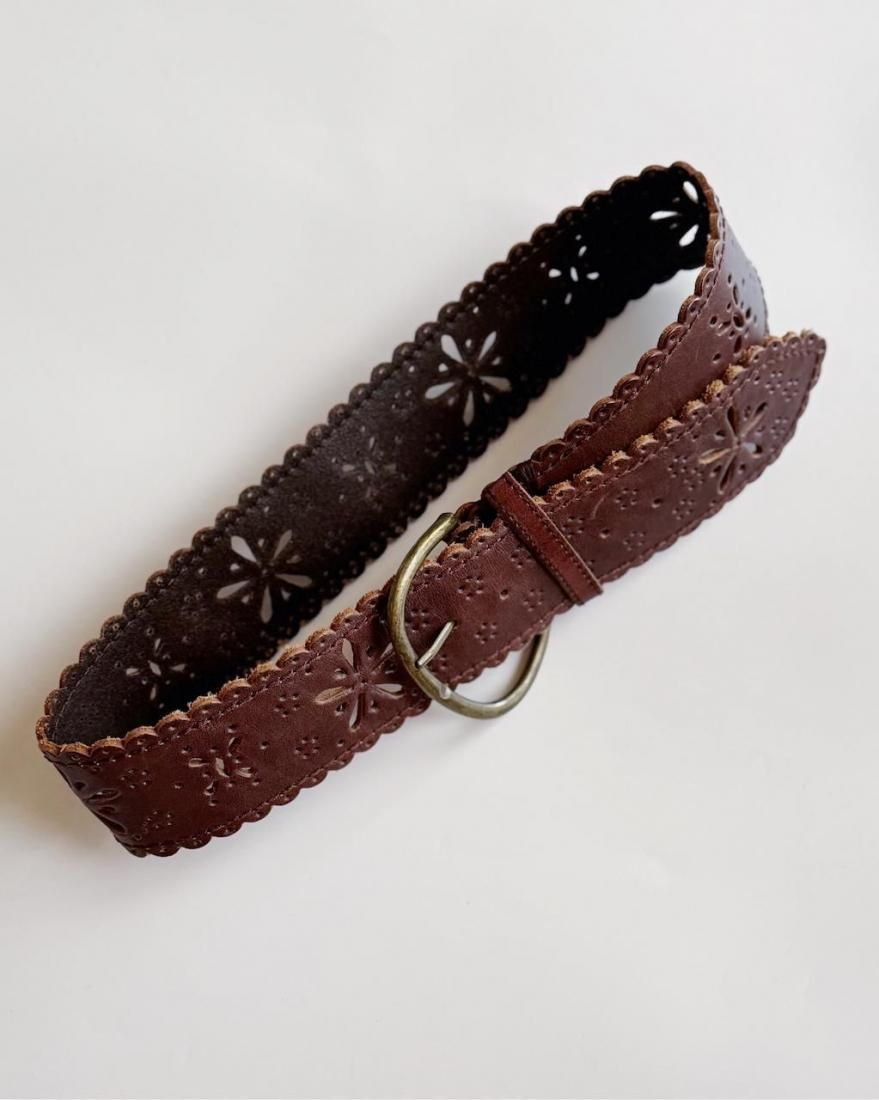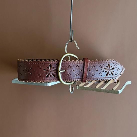 フラワーモチーフにカットワークされたレザーのフォークロアデザインが素敵なベルトです。
