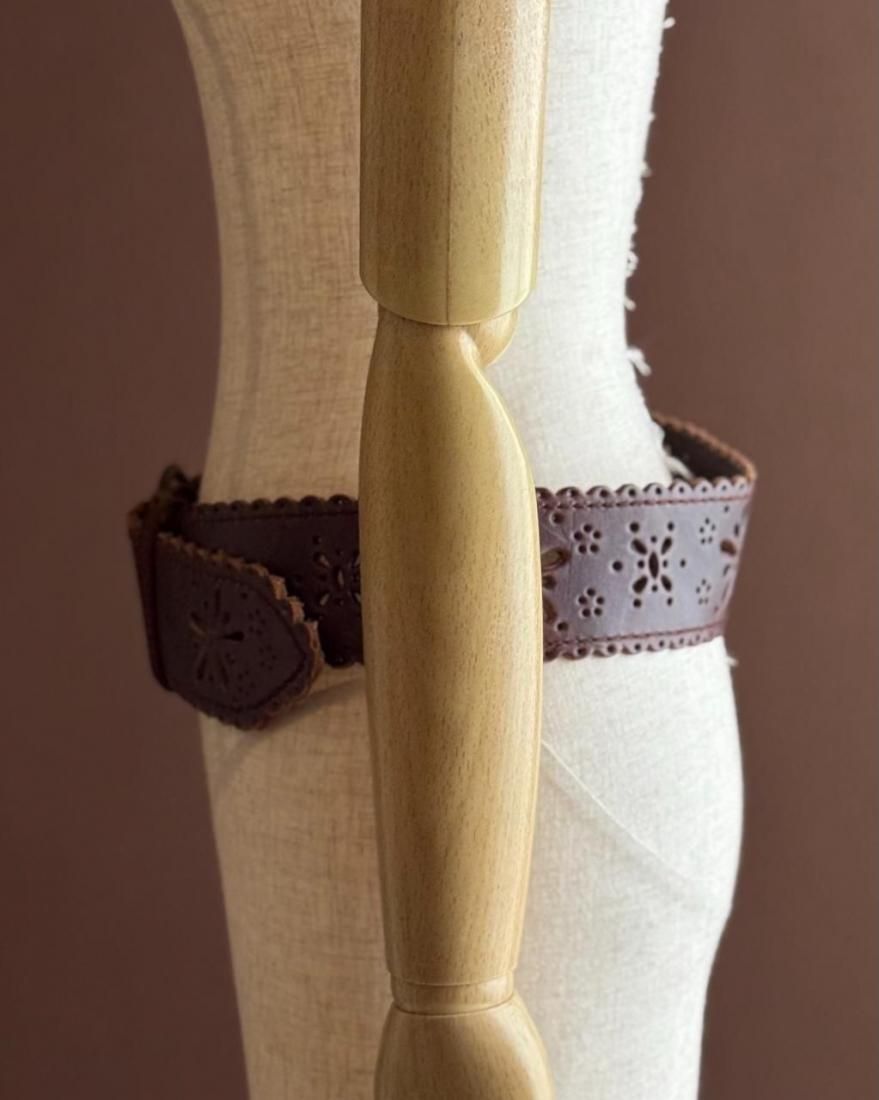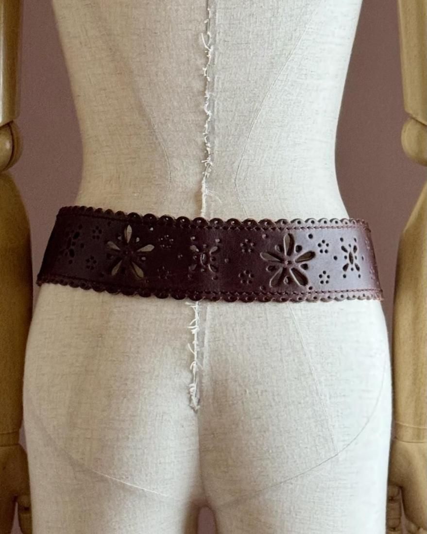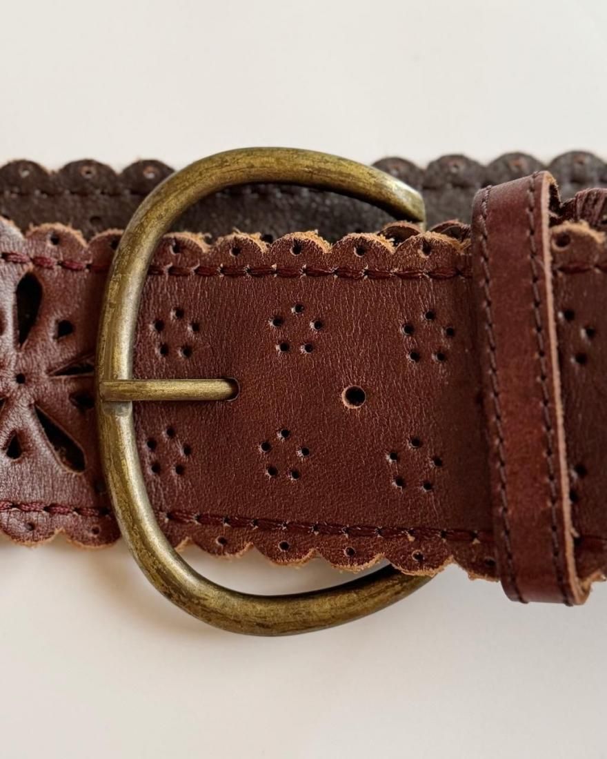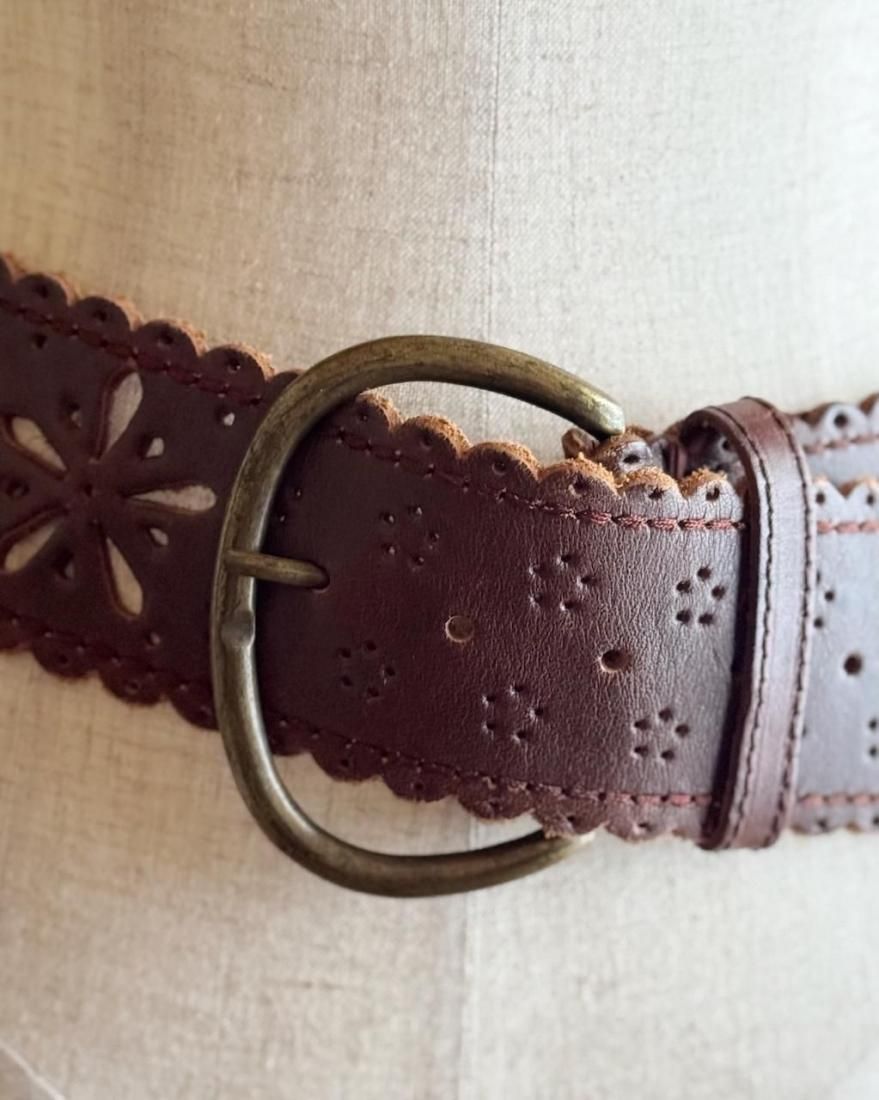 フラワーモチーフにカットワークされたレザーのフォークロアデザインが素敵なベルトです。