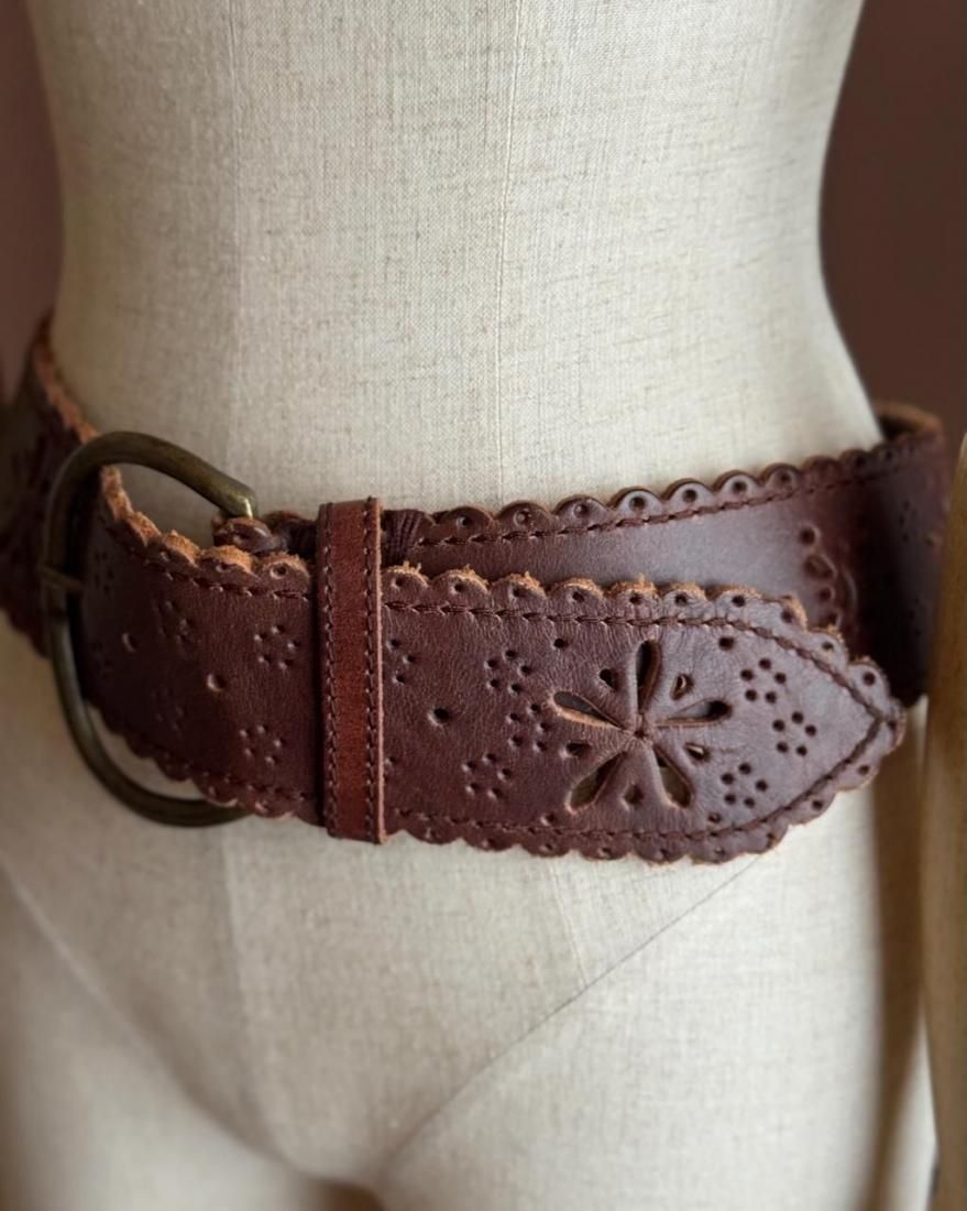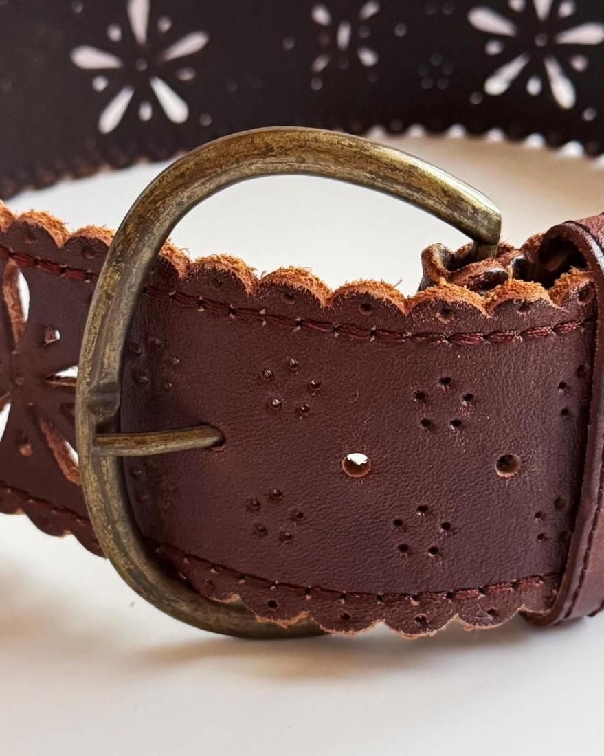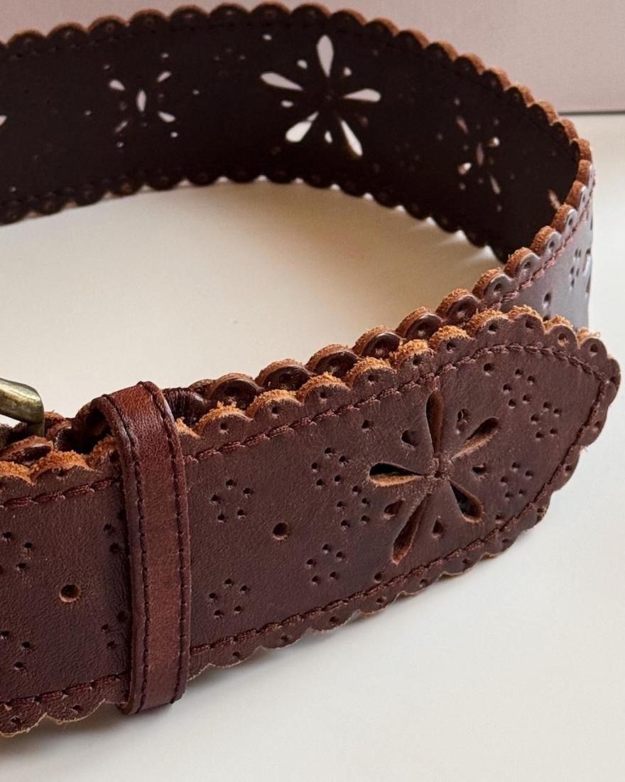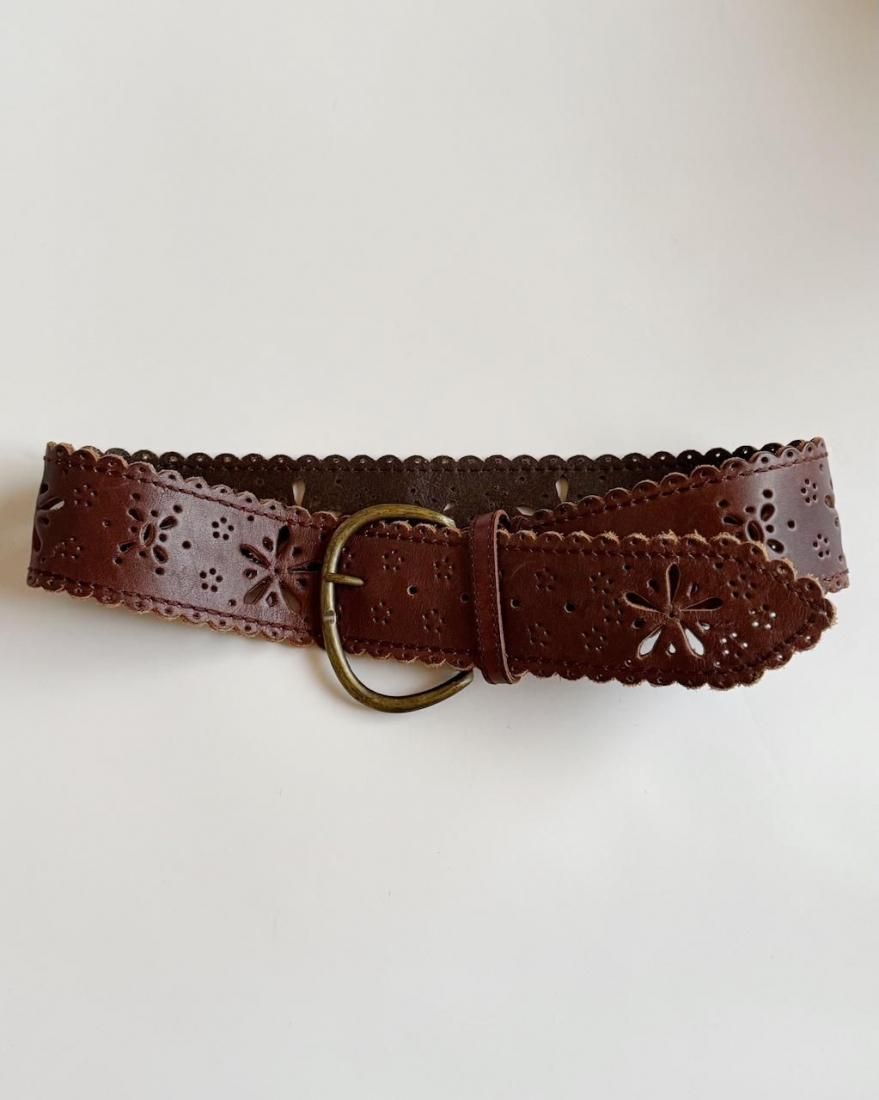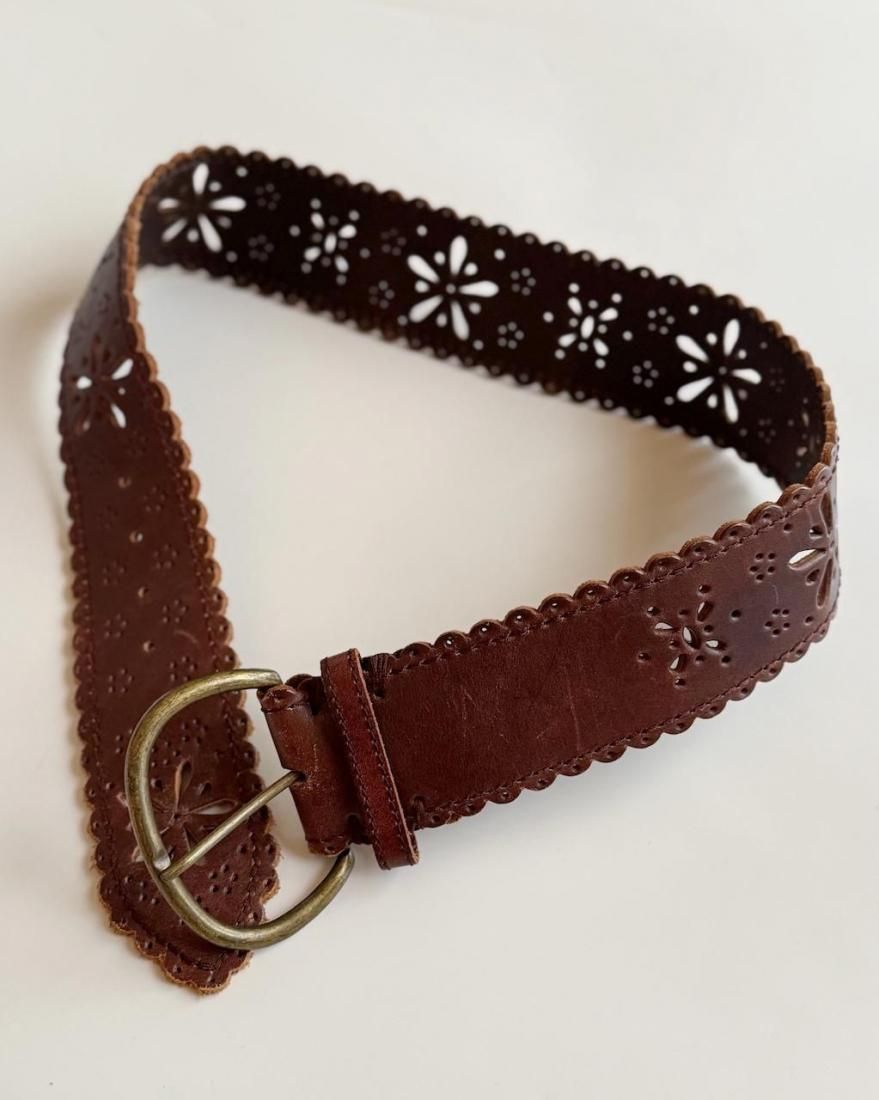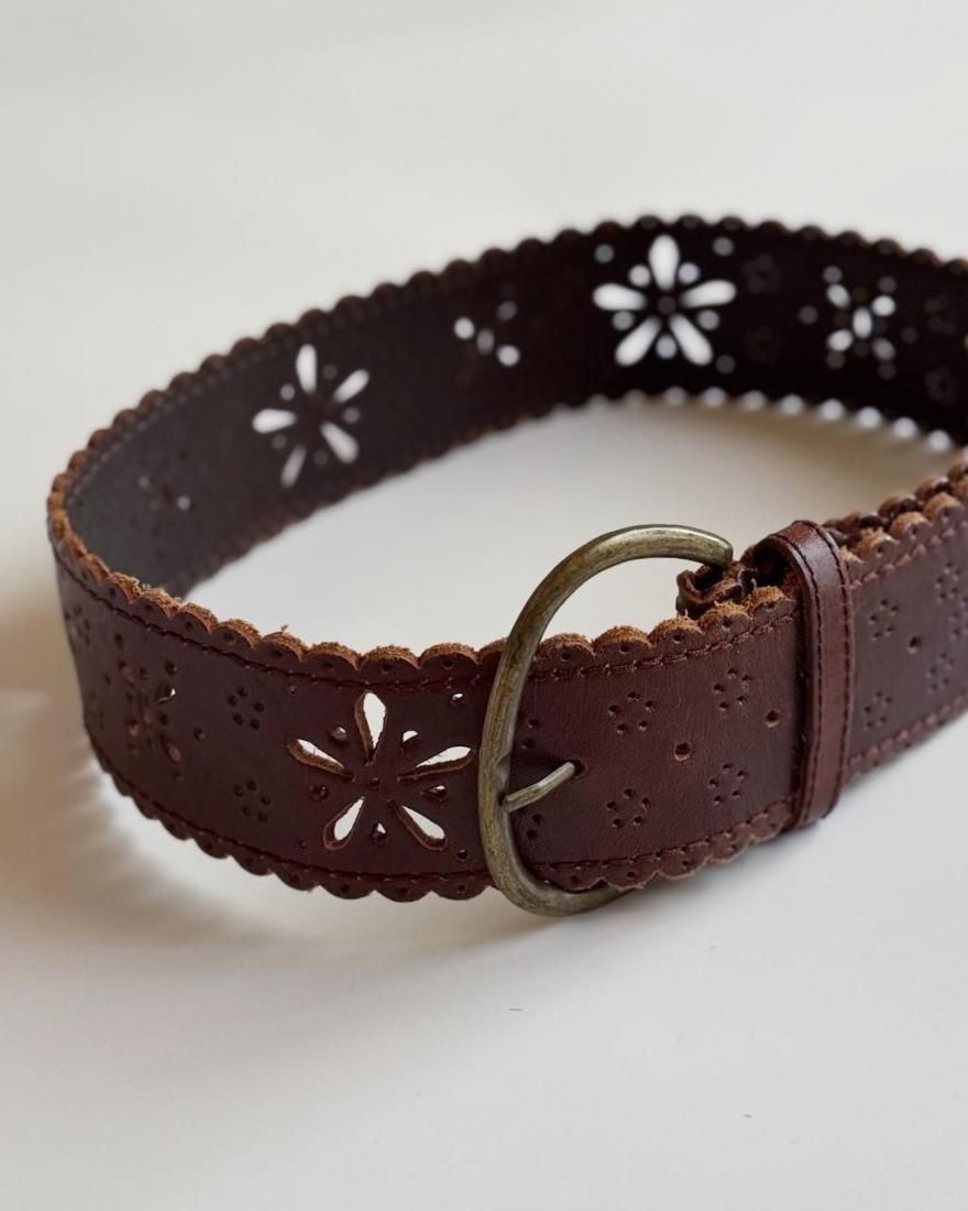 Vintage Flower Motif Leather Belt