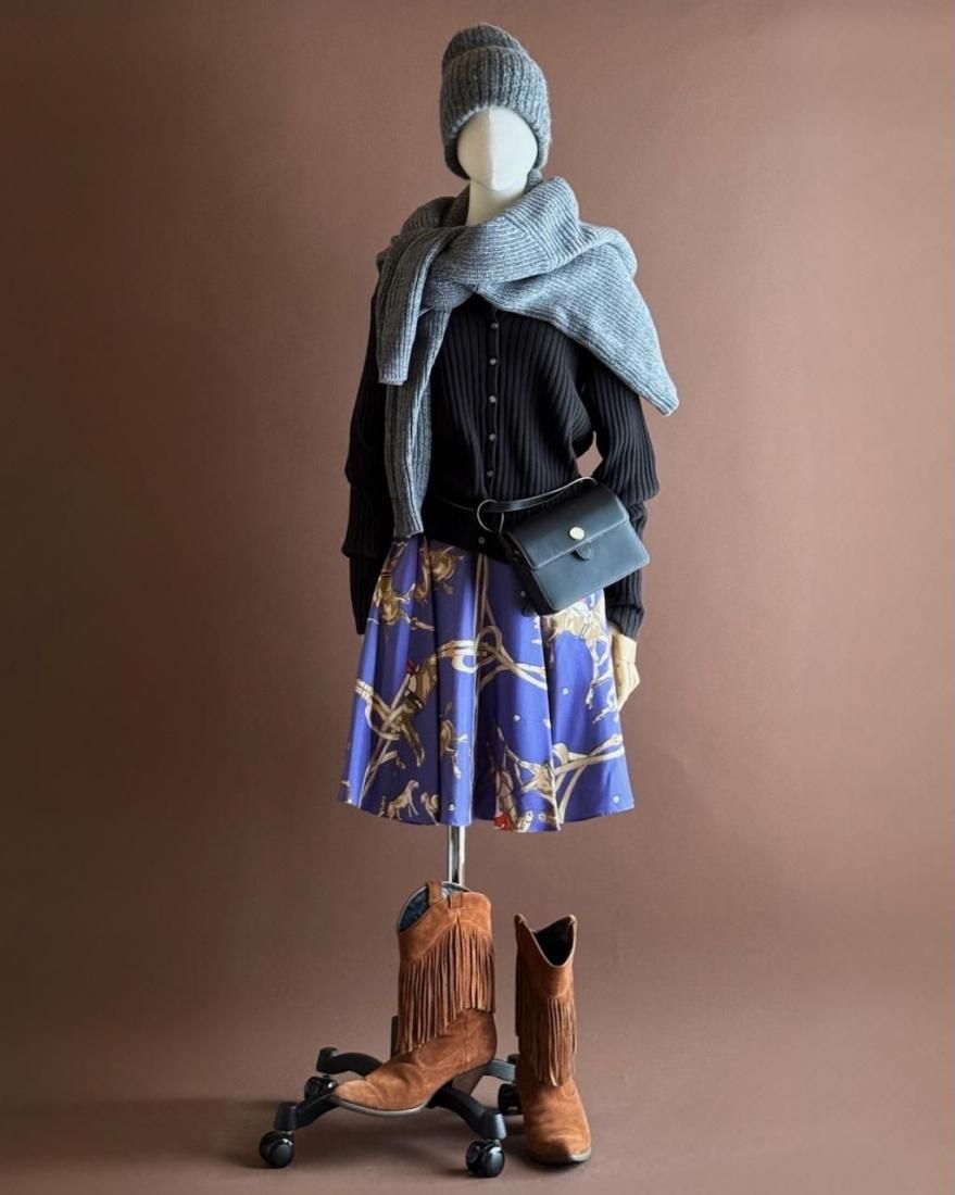 シルクスカーフをスカートに仕立てたような、さらりとした上質な風合いとミニ丈が素敵なスカート。