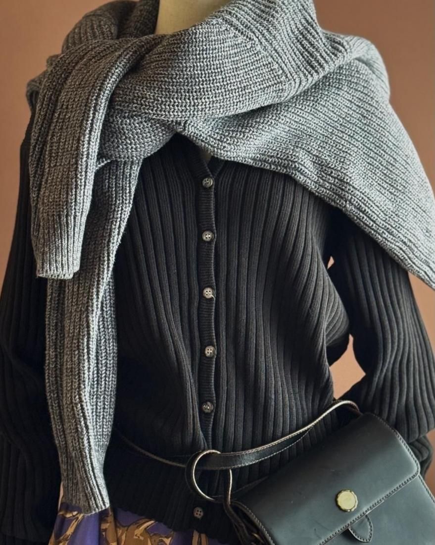 肩や首元にふわっと羽織ったり、ウエストに巻いたりするのが気分。