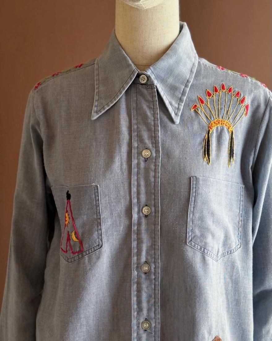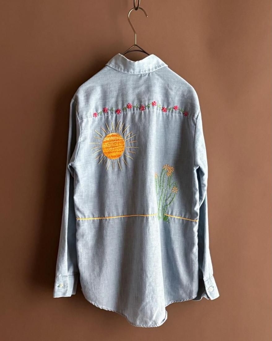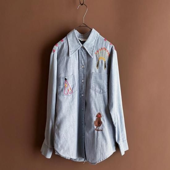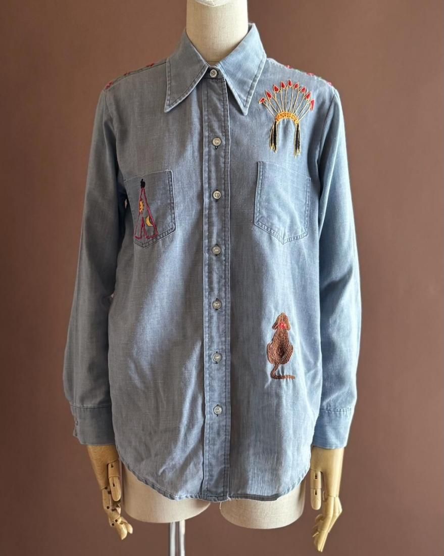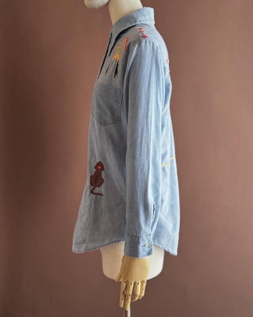 カラフルだけど、シンプルな刺繍使いが可愛いシャンブレーシャツ。