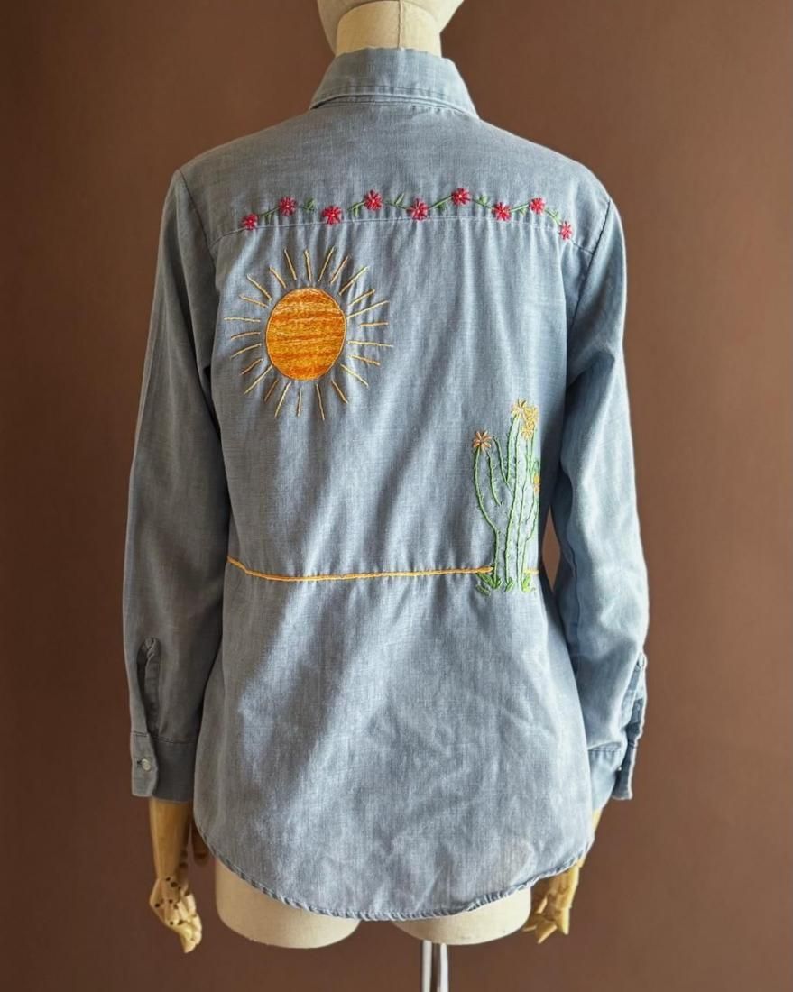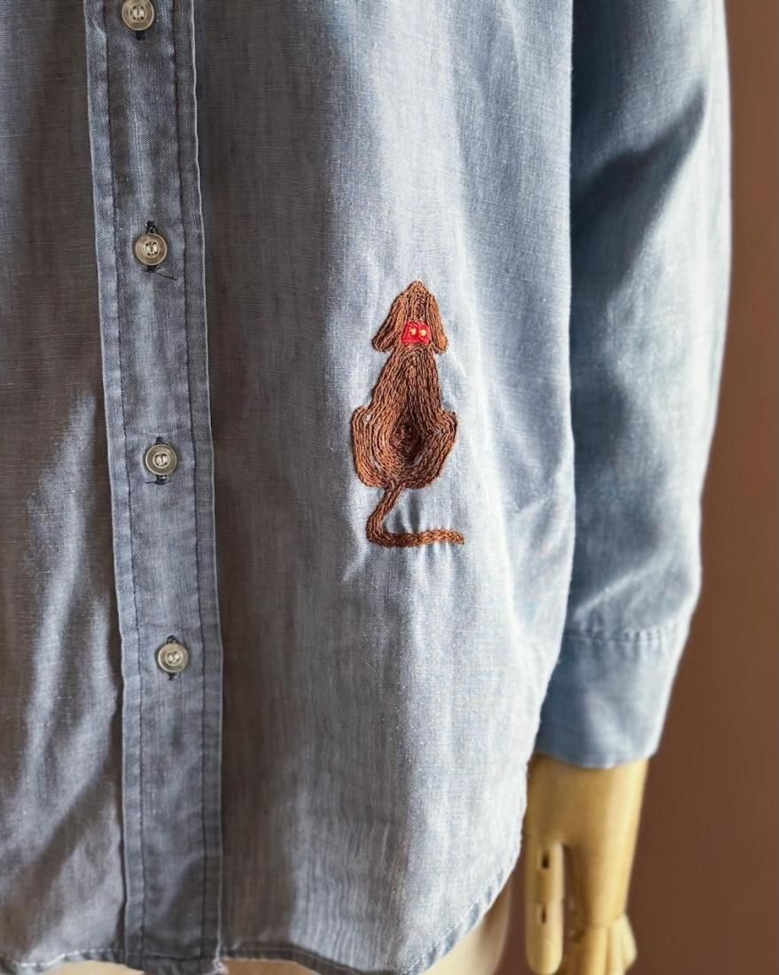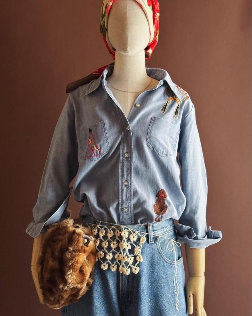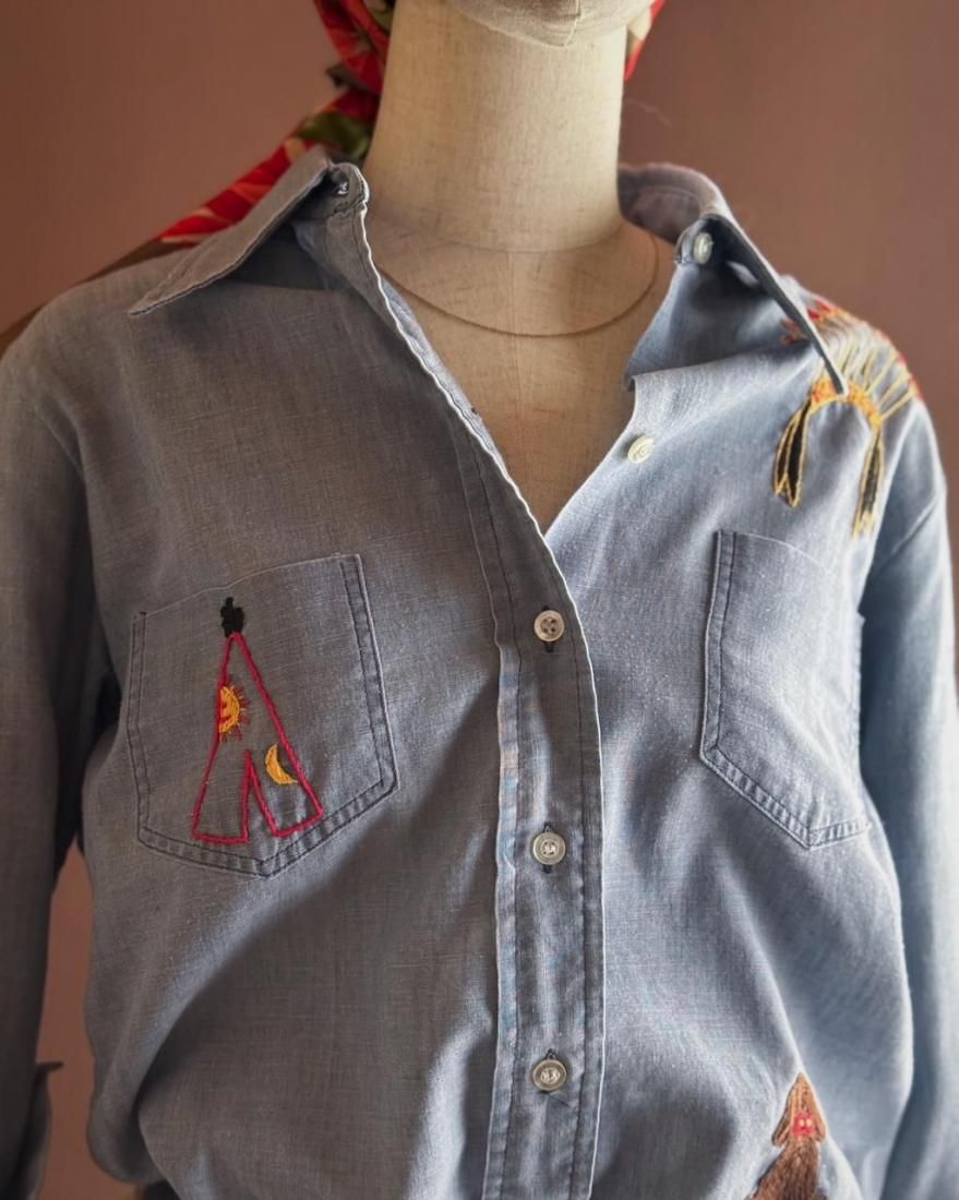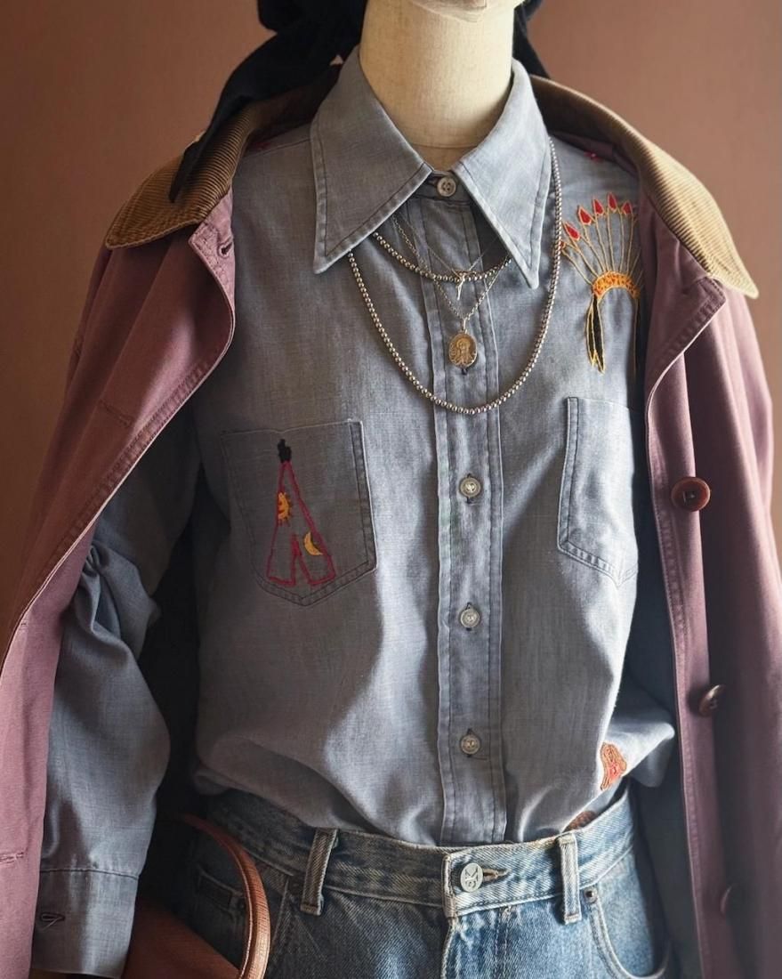 カラフルだけど、シンプルな刺繍使いが可愛いシャンブレーシャツ。