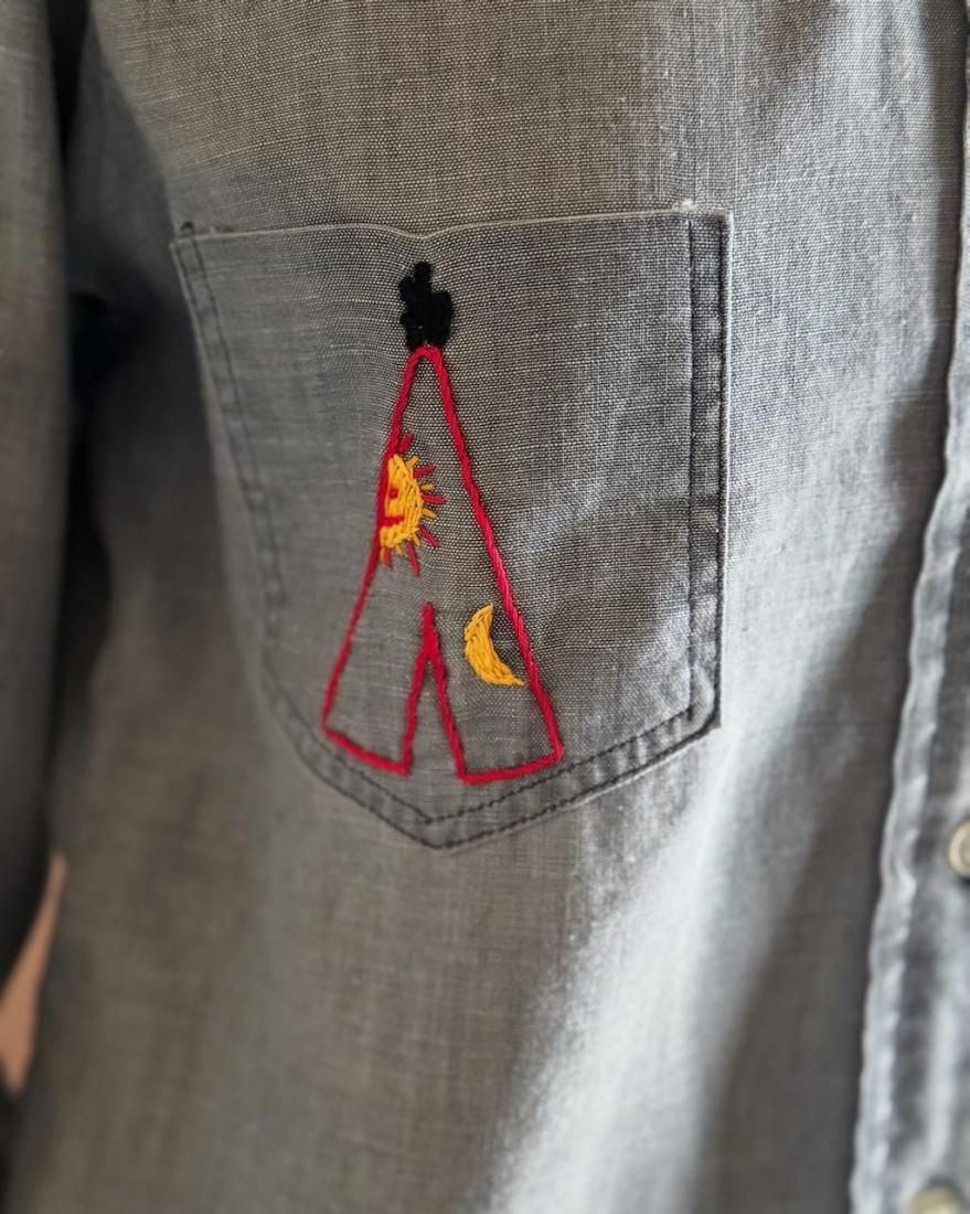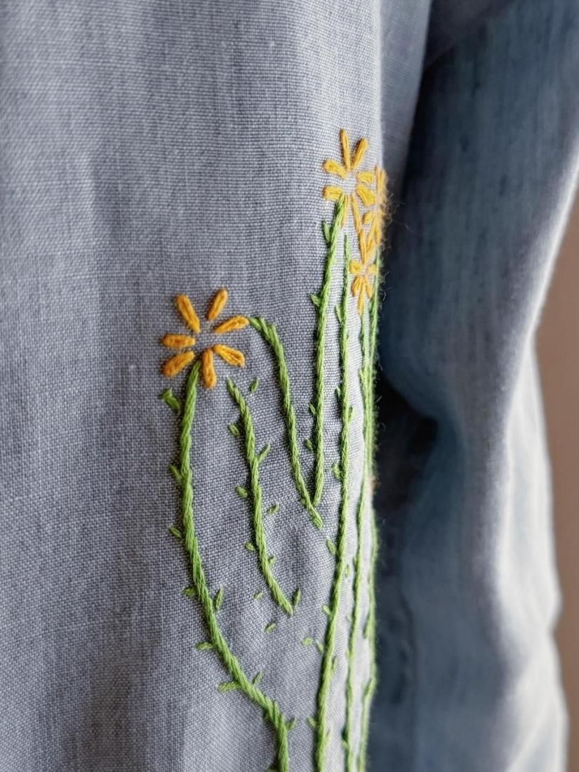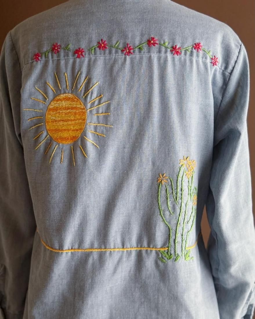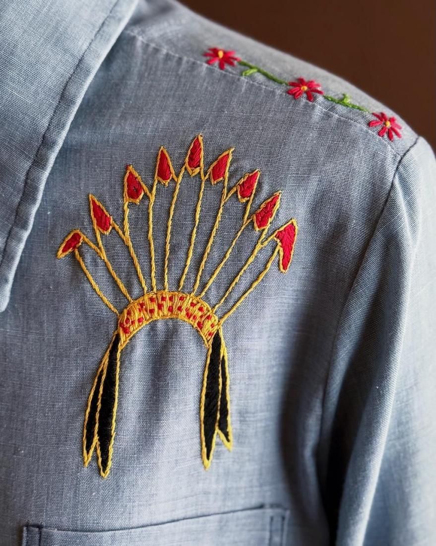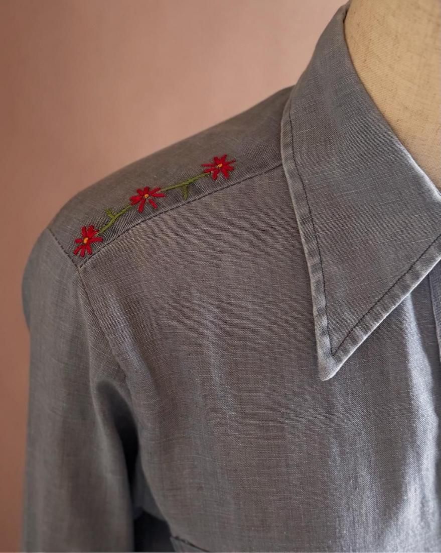 カラフルだけど、シンプルな刺繍使いが可愛いシャンブレーシャツ。