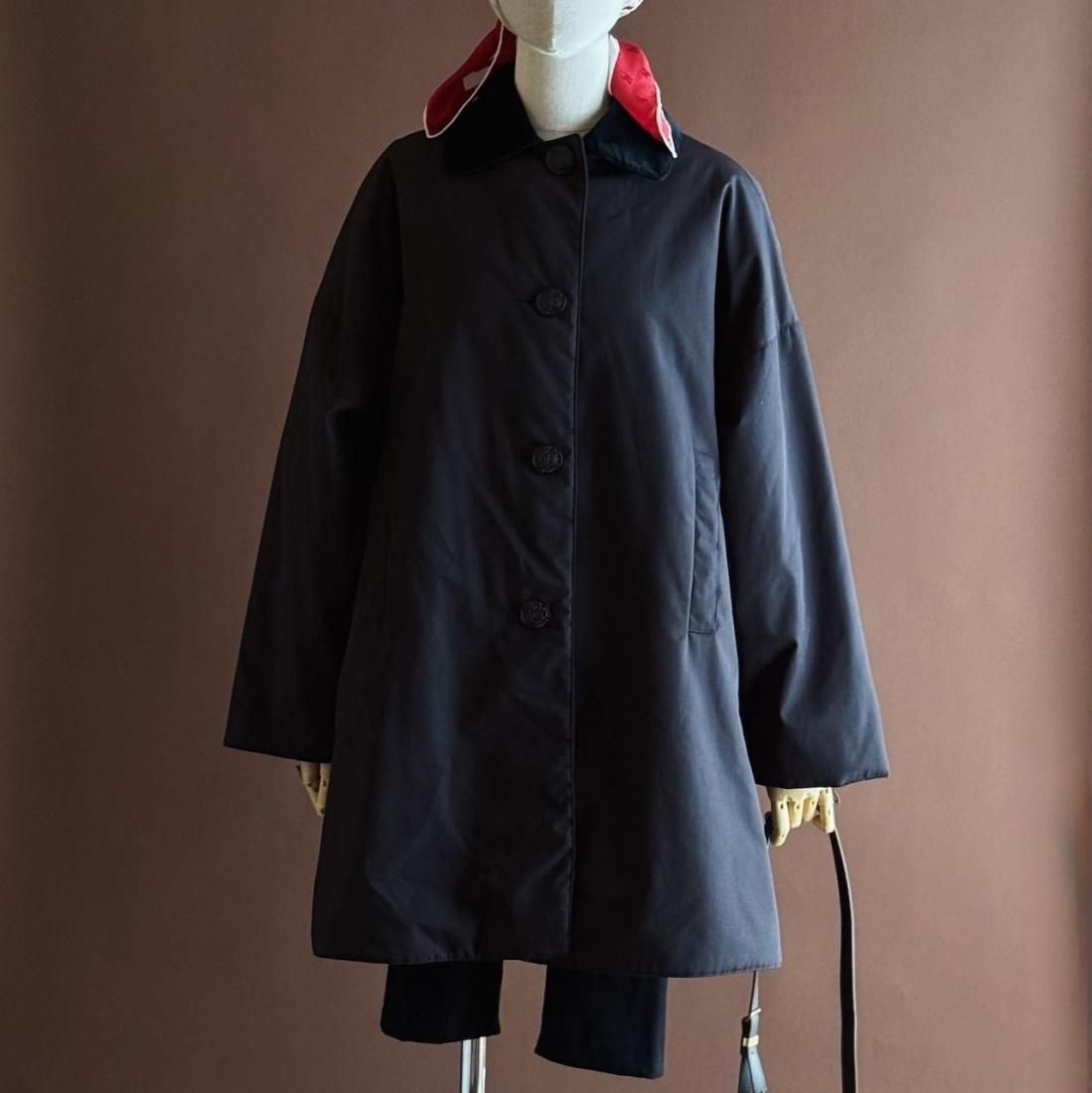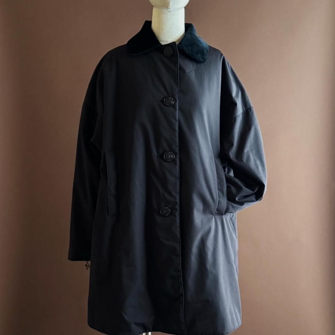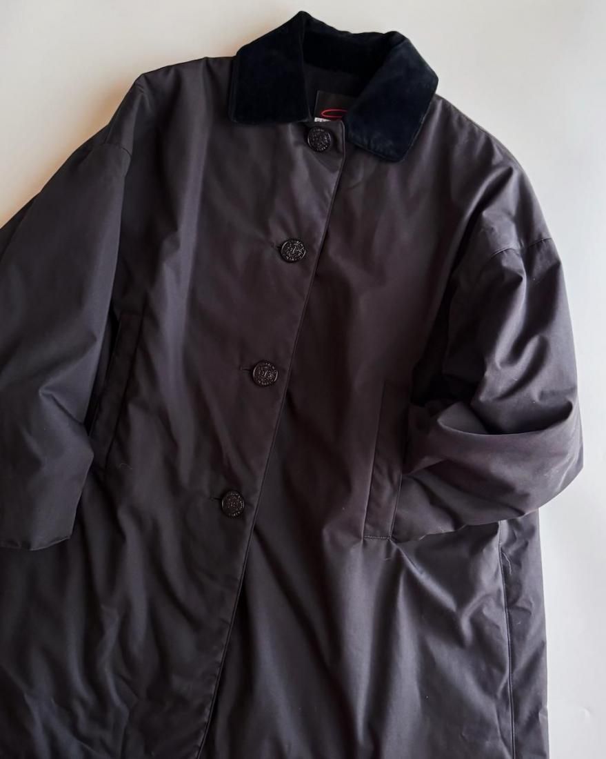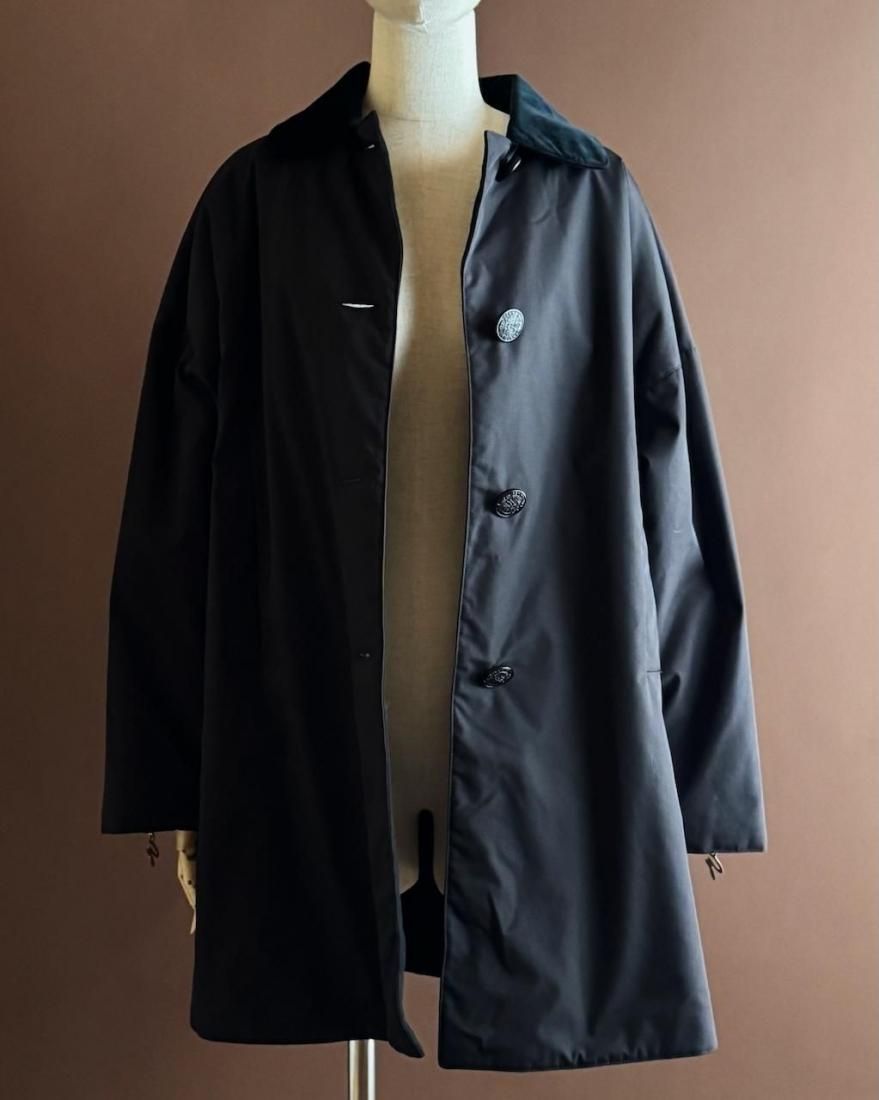 ベロア素材の襟、見頃中綿裏地はウール混フリースで暖かなハンティングジャケット、カバーオールジャケット。