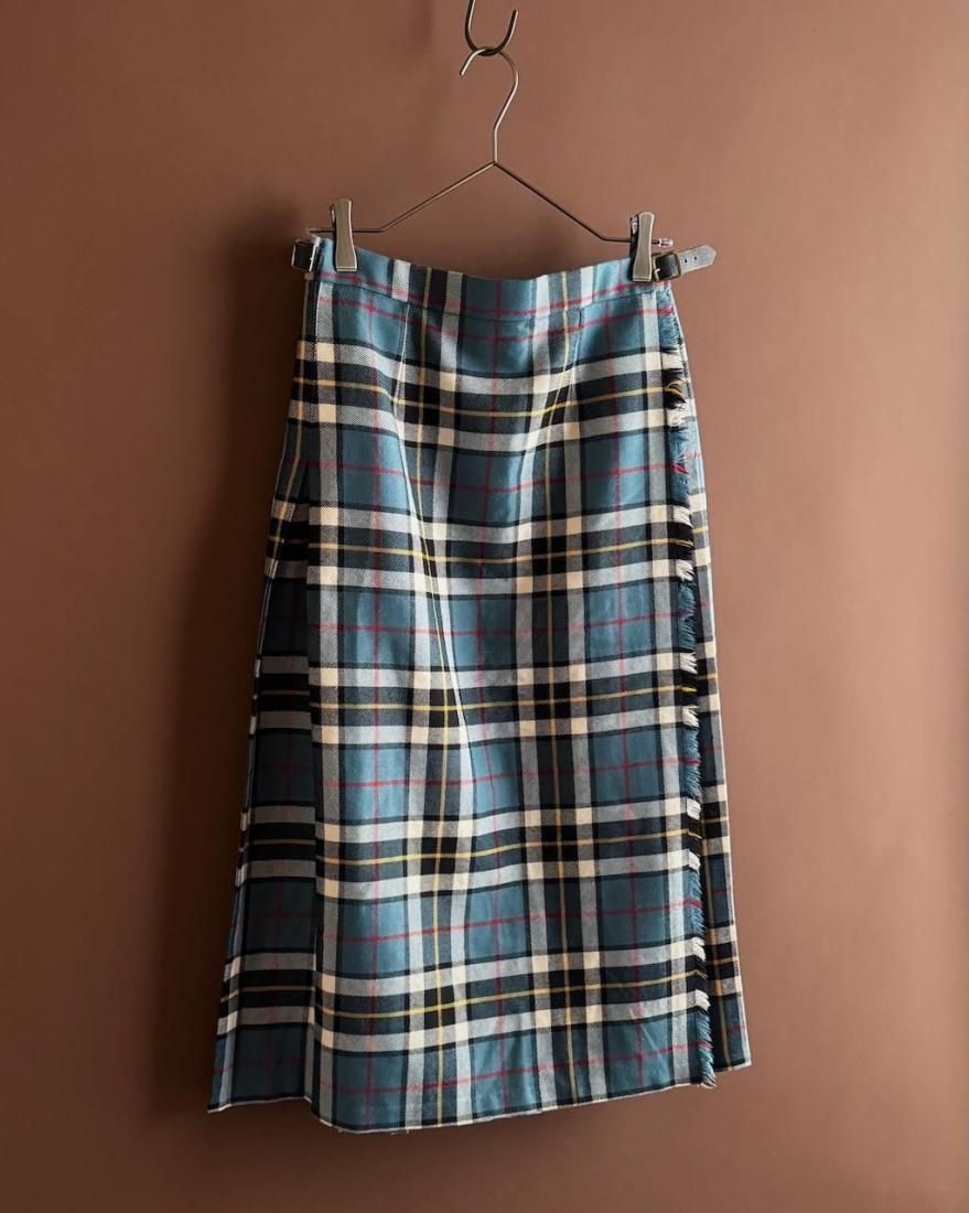 Made in Scotland Wool Wrap Kilt Skirt Smoky Blue