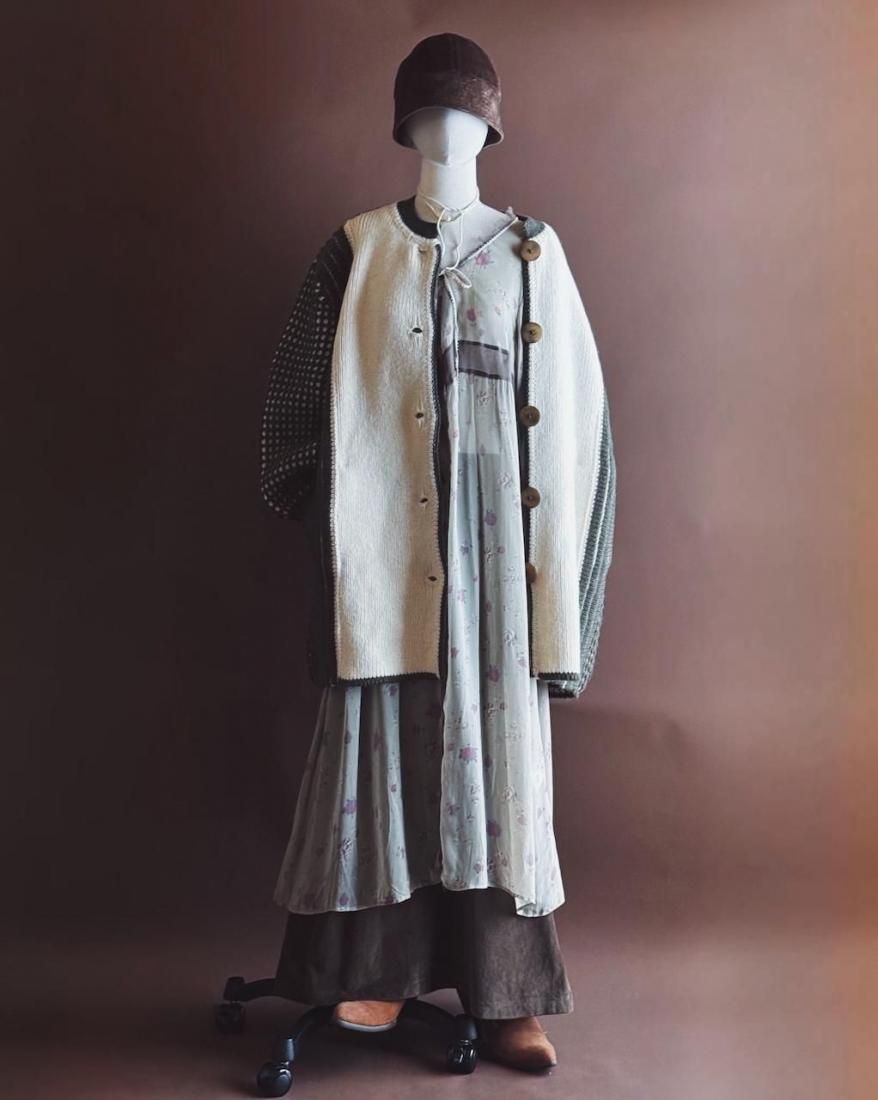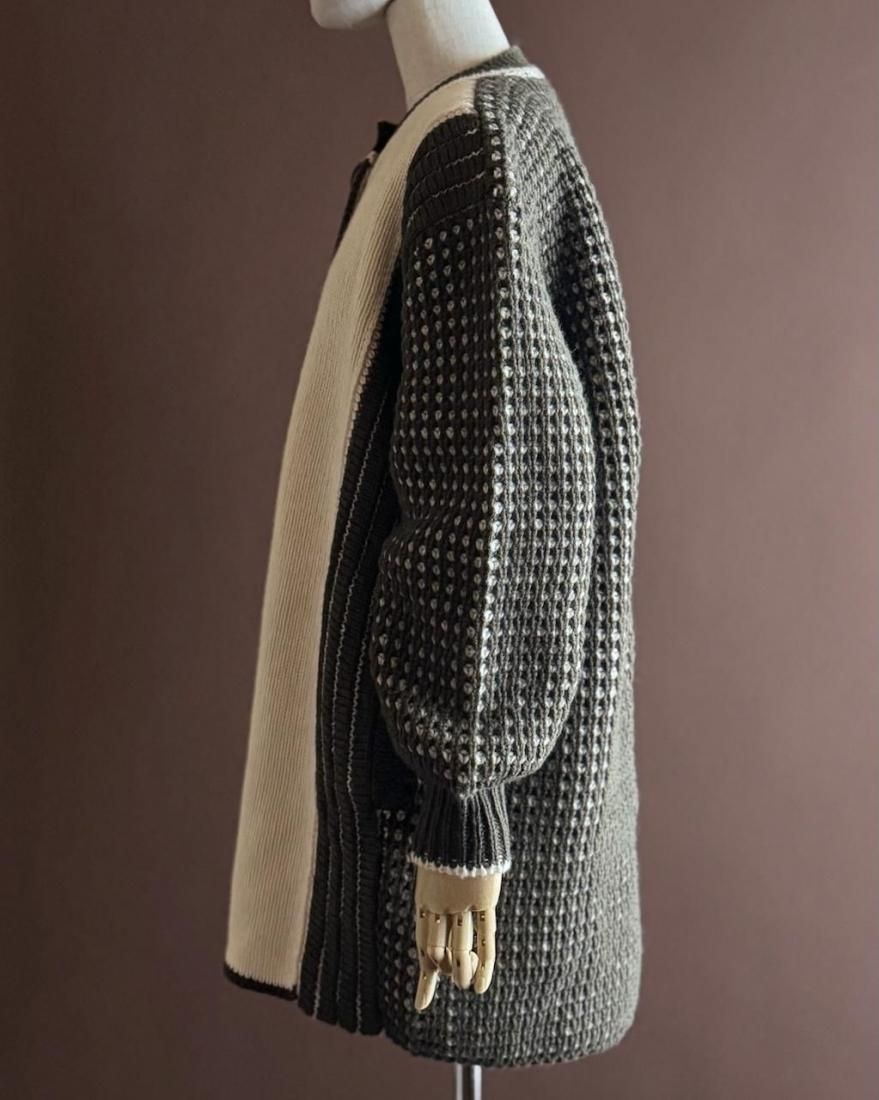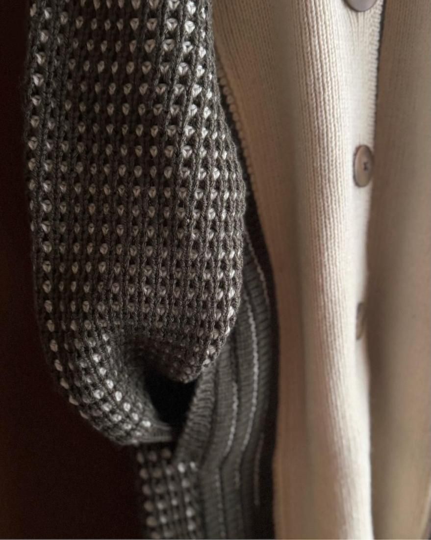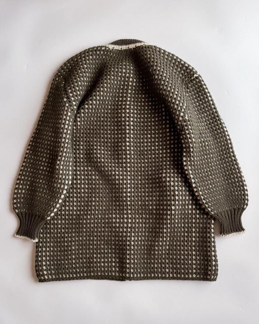 カーディガン、というよりはニットコートのような感覚で着こなせるしっかりと厚手の風合いです。