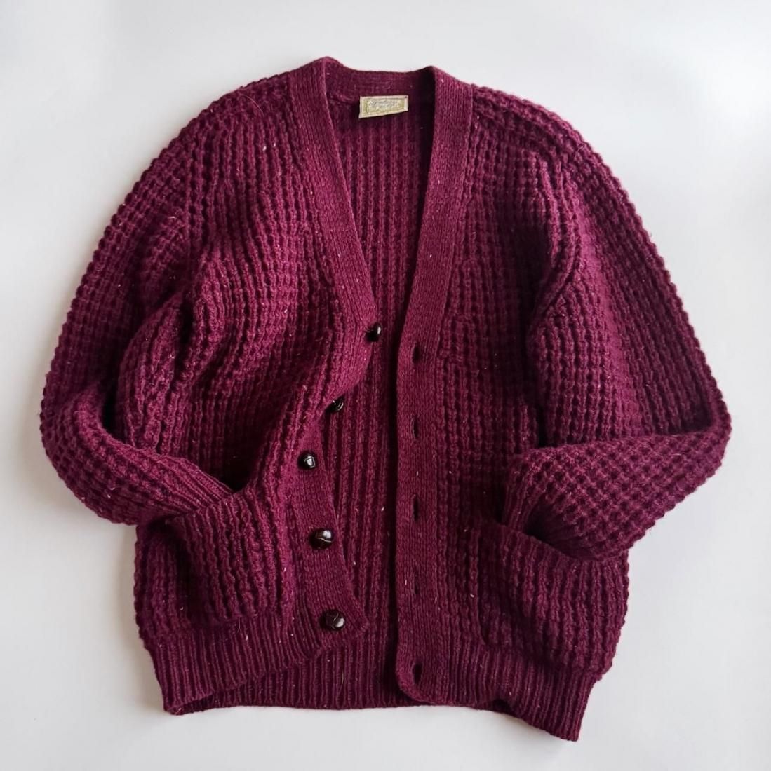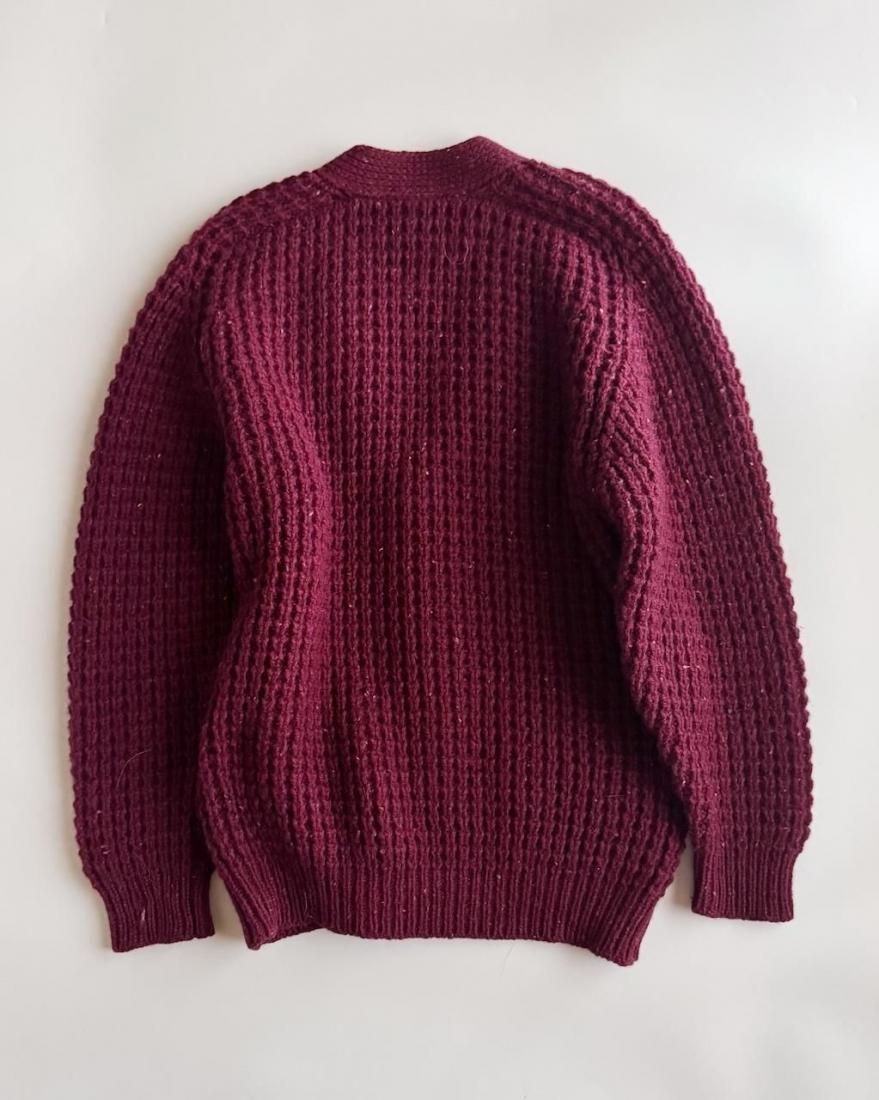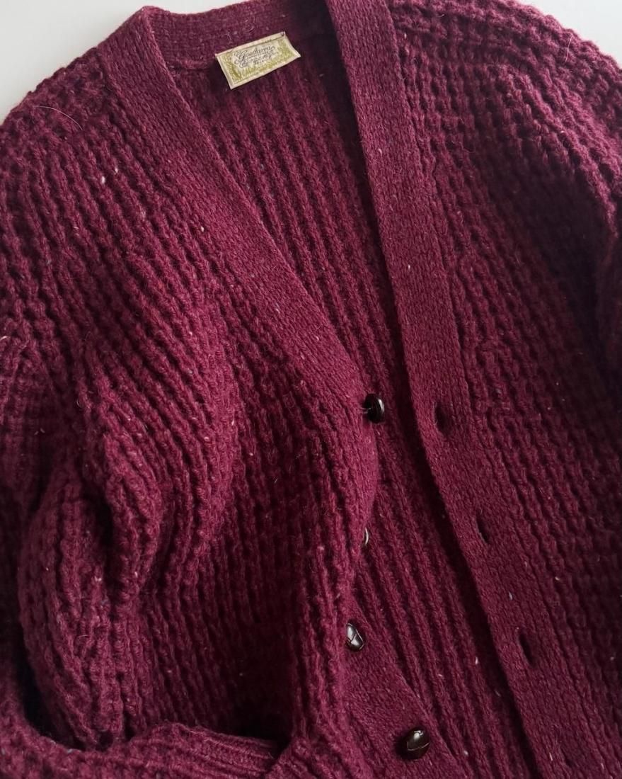 バーガンディカラーに白や青などのカラフルなネップが入っているのがレトロな雰囲気が可愛い!