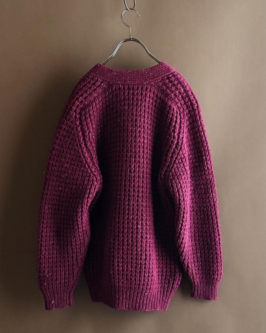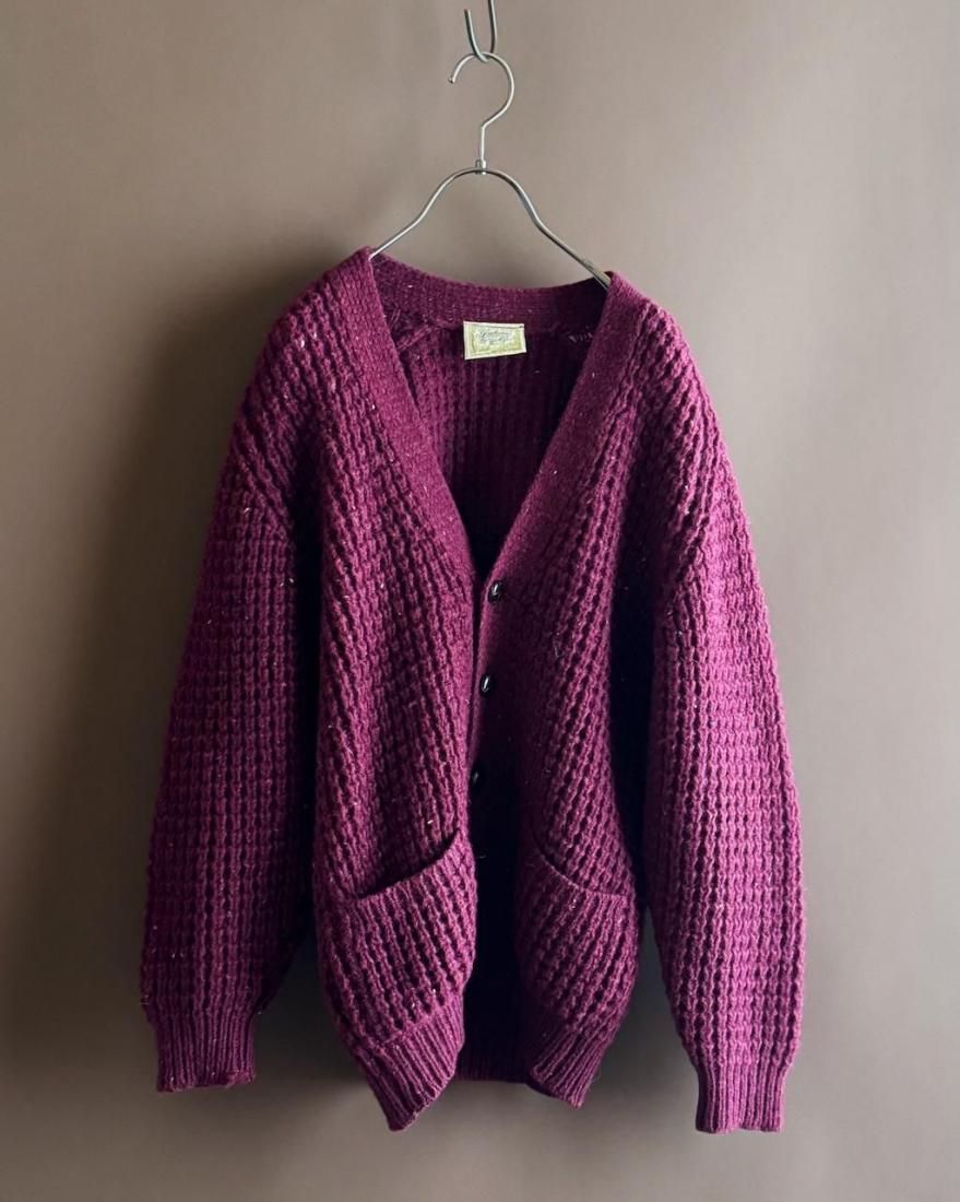 アイルランドでハンドメイドで編み込まれたざっくりとした質感が素敵なニットカーディガン。