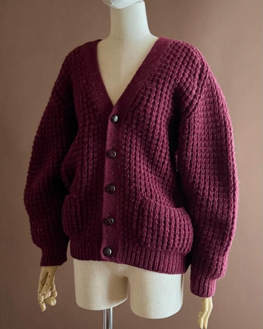 厚手でボリュームのあるカーディガンは、軽いアウターとして日中や車でのお出かけに最適な一枚です。