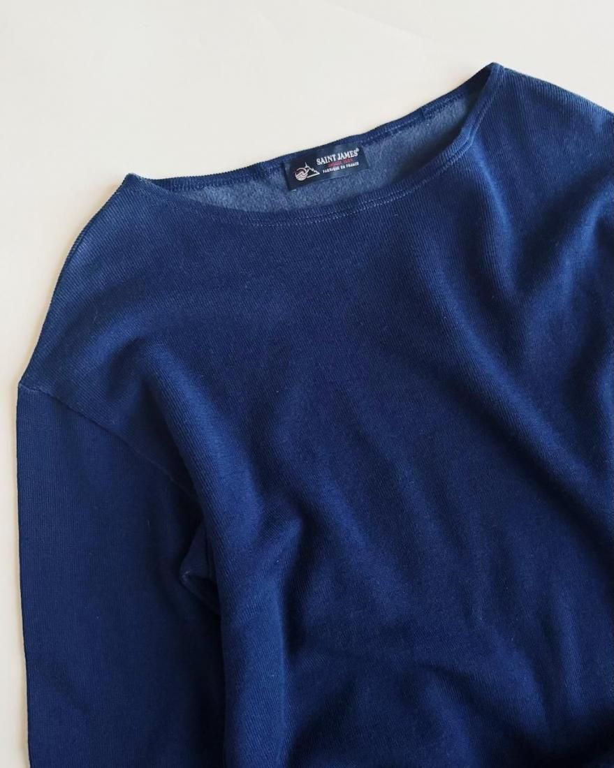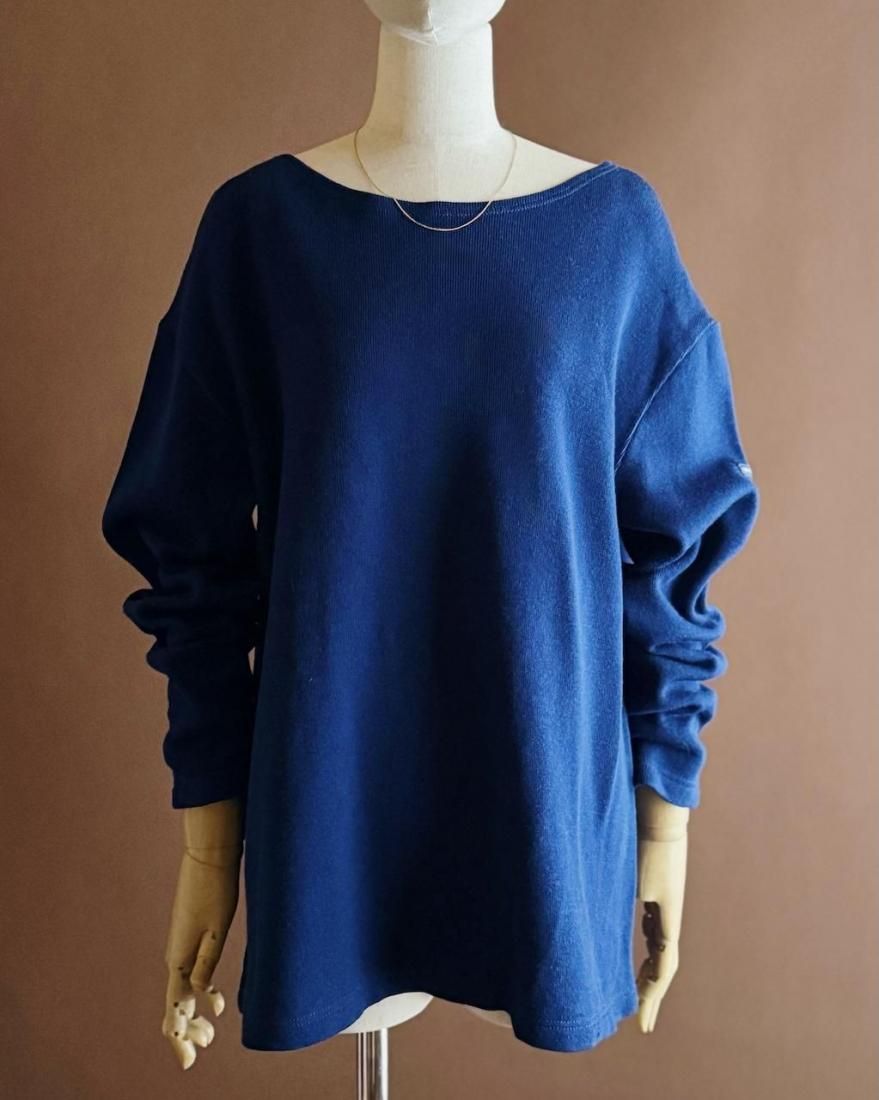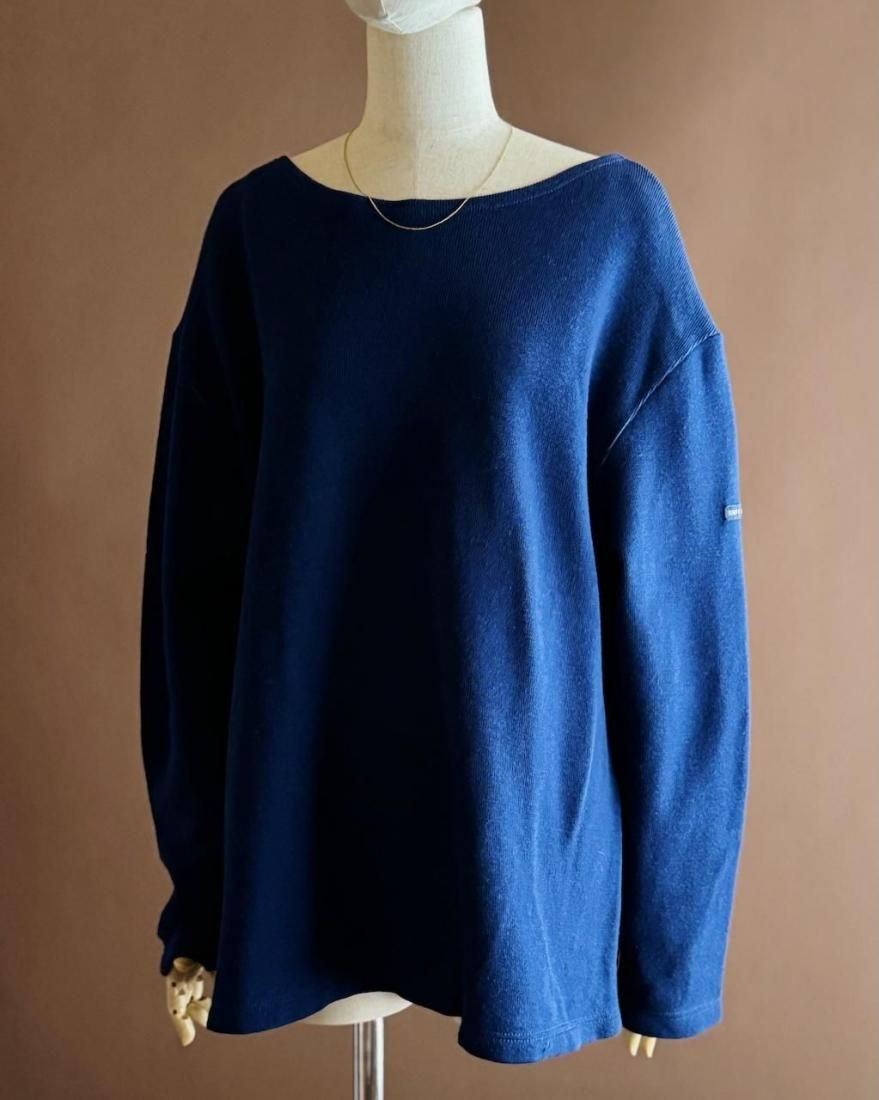 セントジェームスと言えば、やっぱりボーダーのバスクシャツが定番ですが、シルエットそのままに秋冬にふんわりと暖かく着こなせるボートネックニットがあるんです。