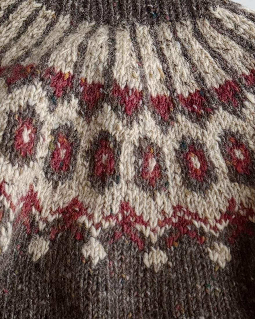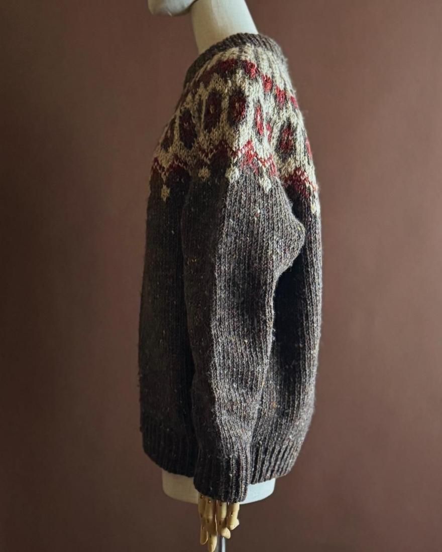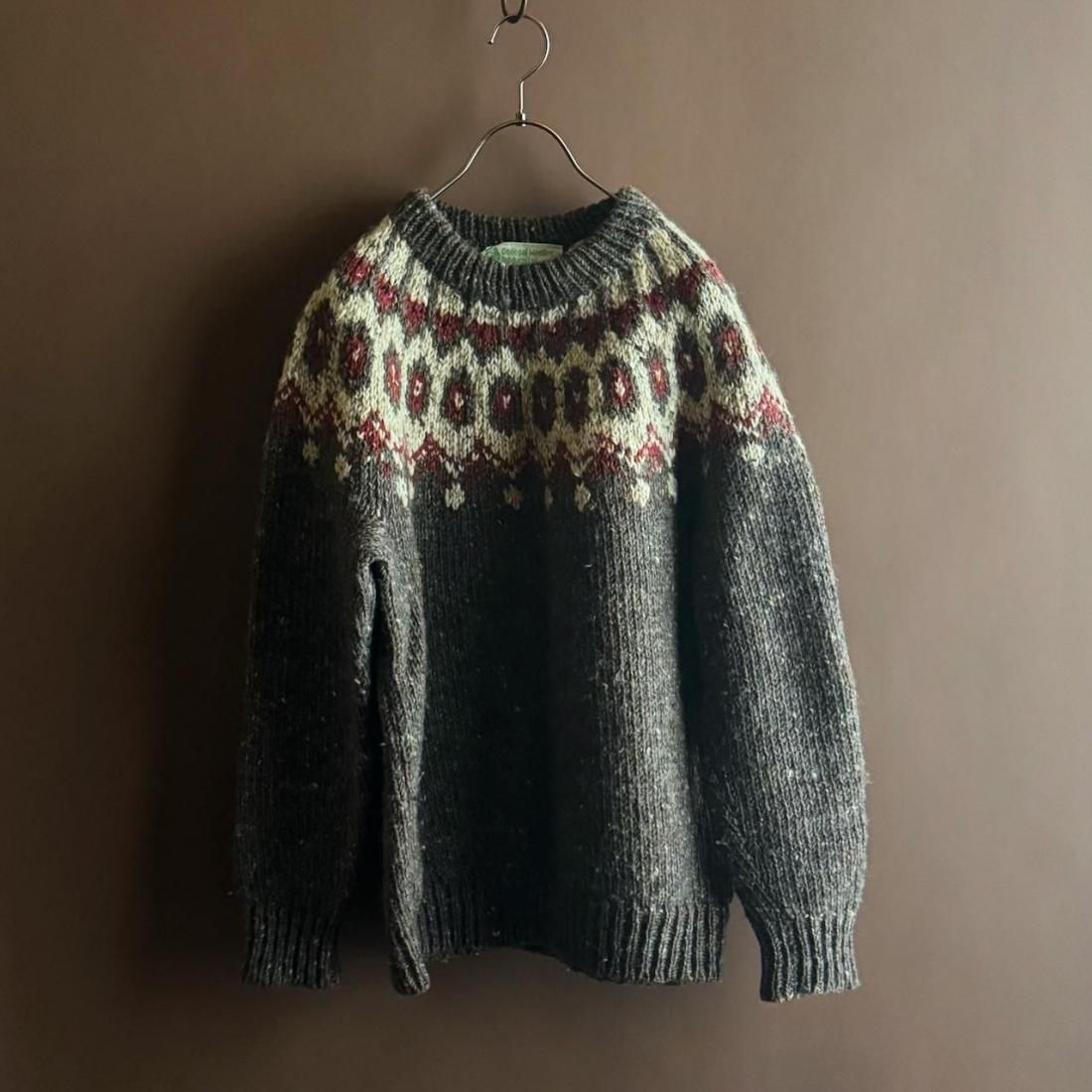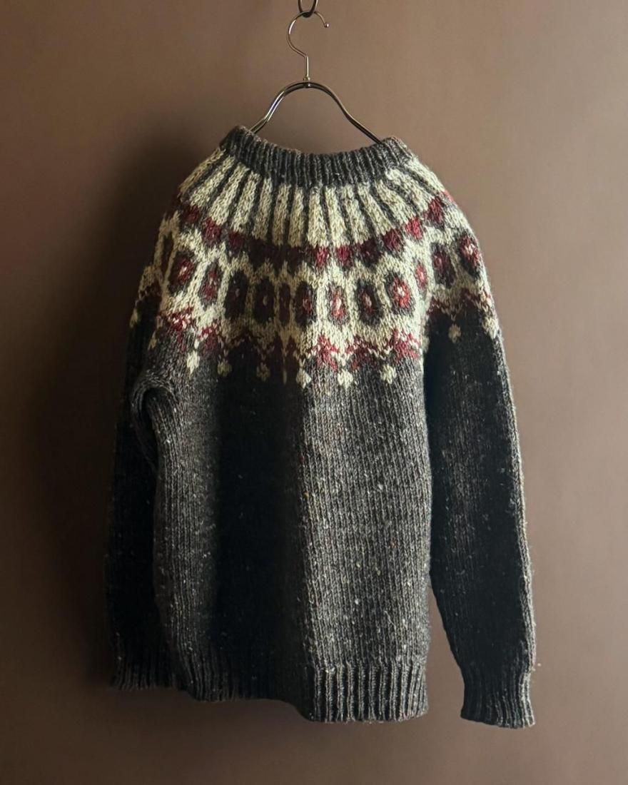 ざっくりと厚手でカラフルなネップの入った風合い、ノルディック柄がかわいいアイルランド製のフェアアイルセーター。