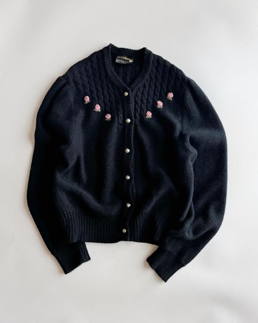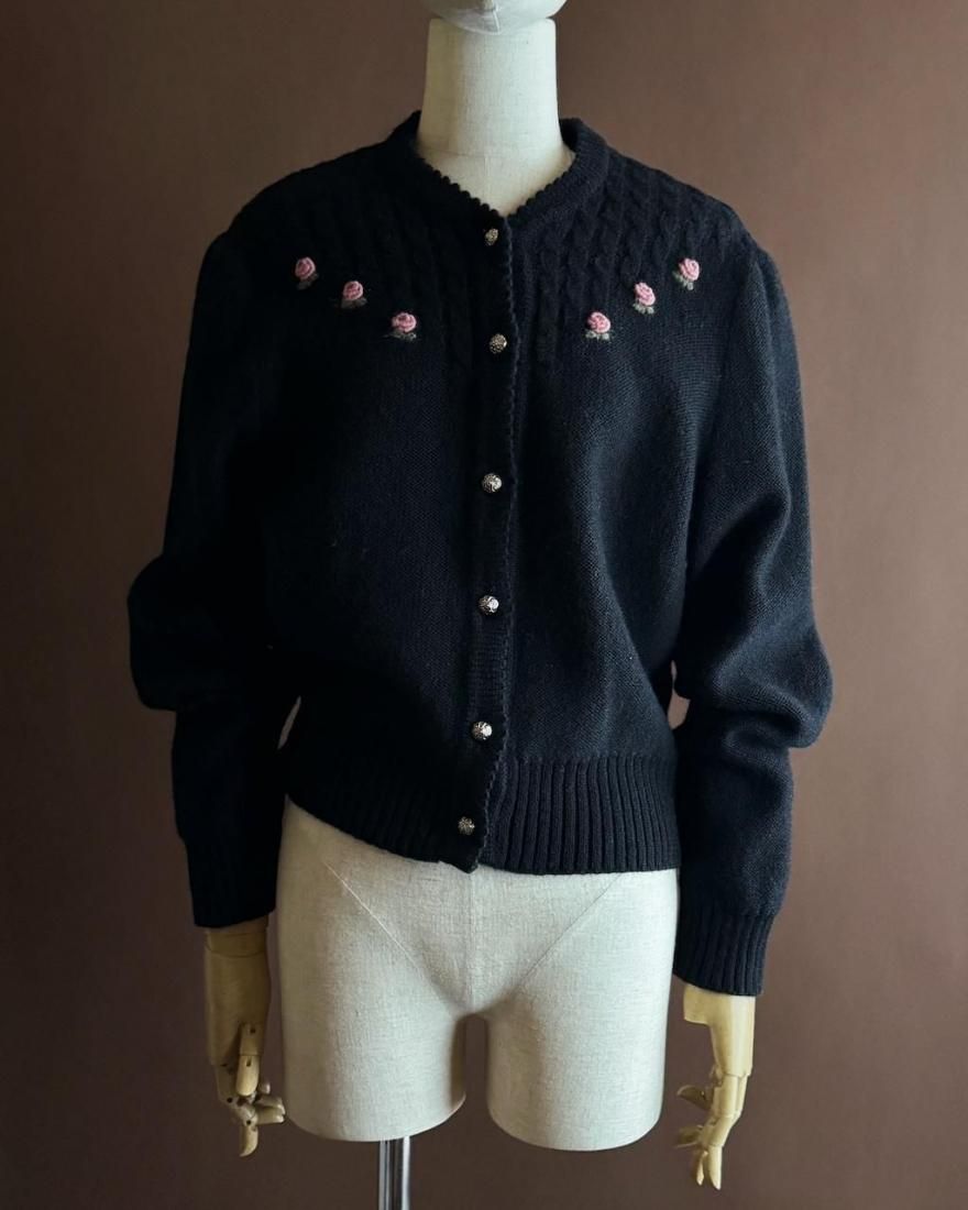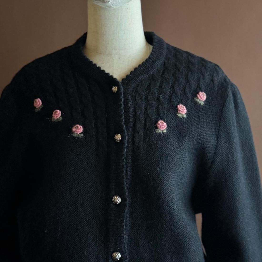 伝統に裏付けられたチロルの民族衣装デザインが素敵な花刺しゅうのニットカーディガン。