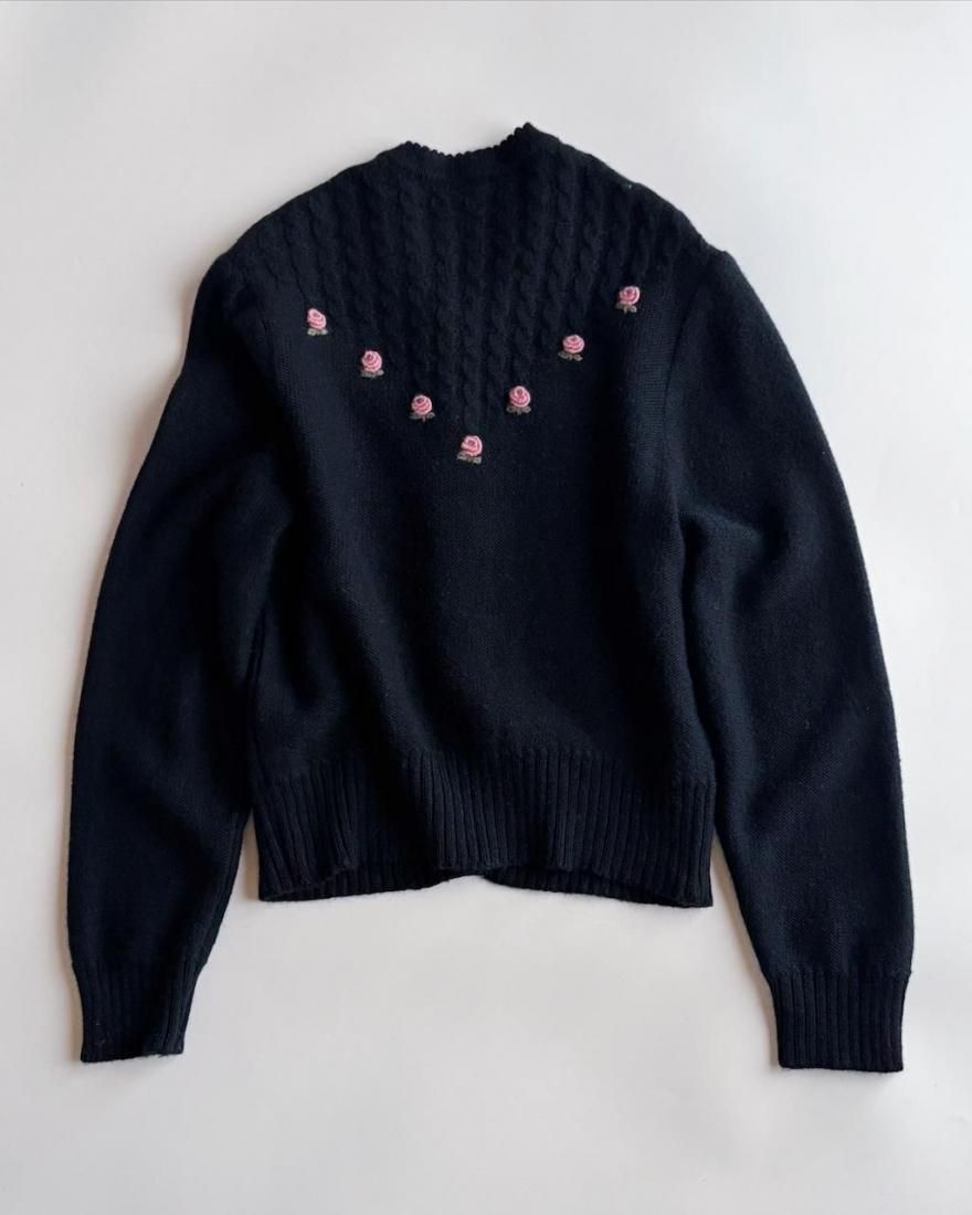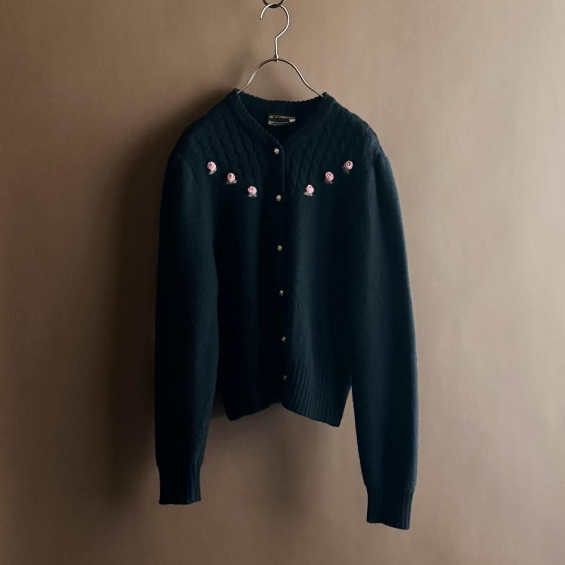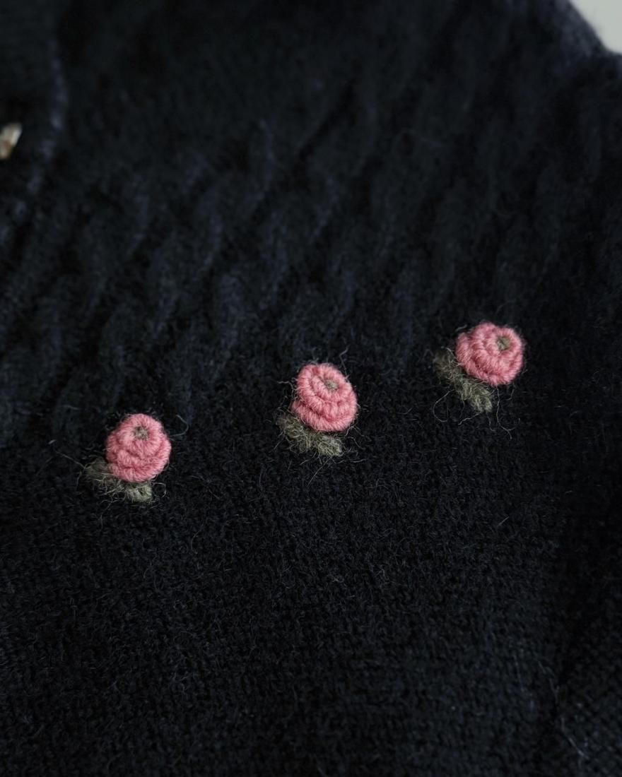 伝統に裏付けられたチロルの民族衣装デザインが素敵な花刺しゅうのニットカーディガン。