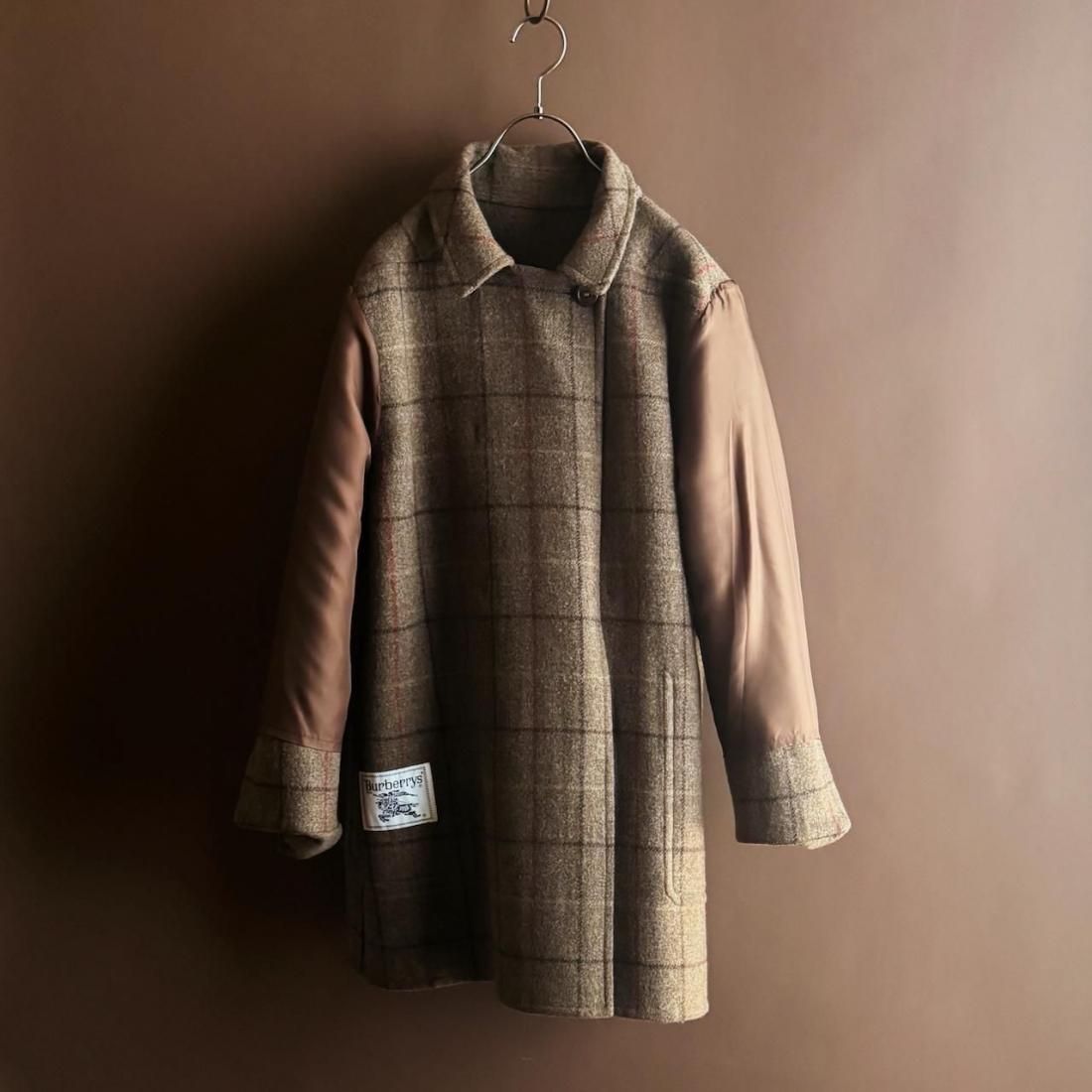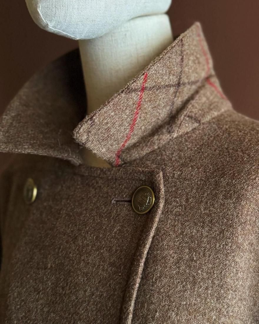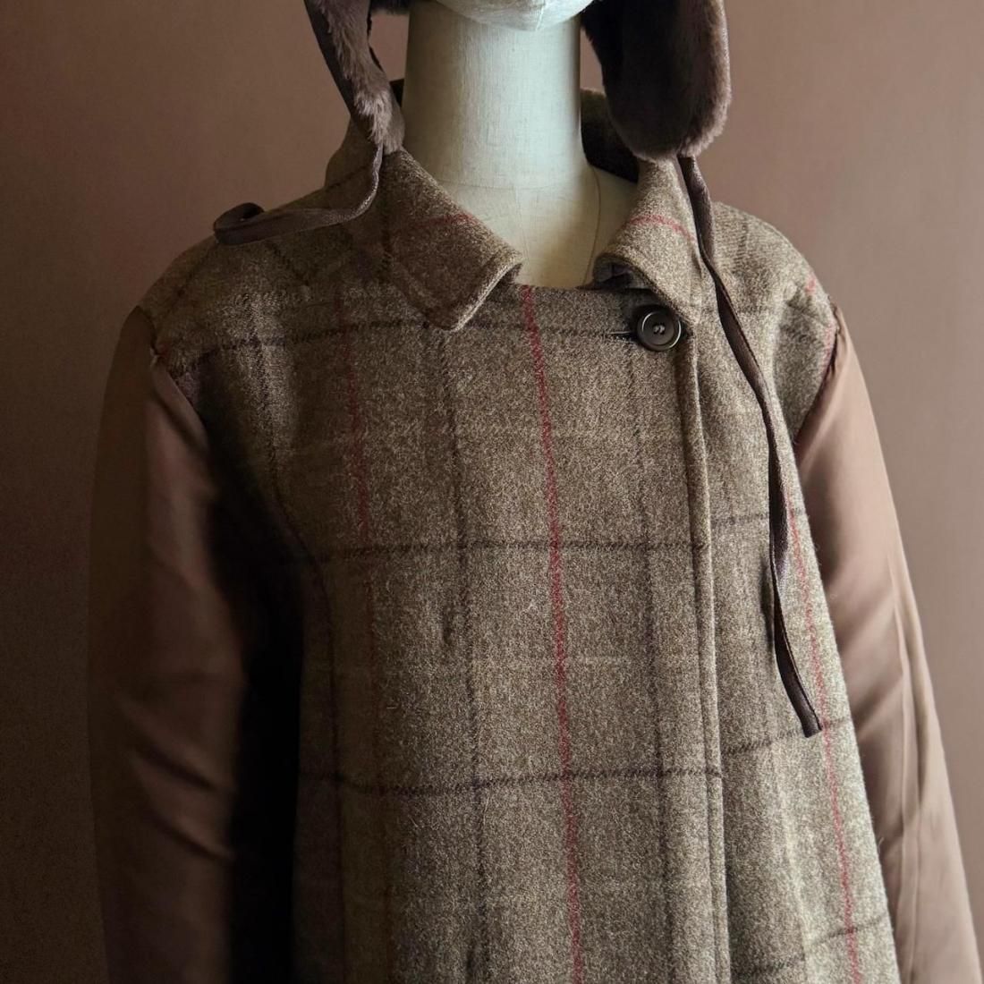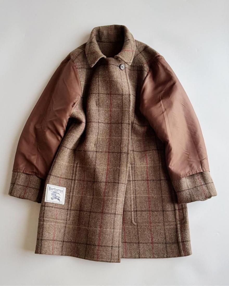 ダークブラウンカラーと裏地のチェック柄が今の気分にぴったりなリバーコート。