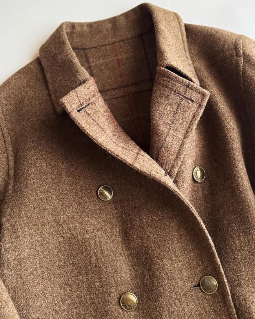ミディアム丈のピーコートシルエットは、重厚に見えますが軽くて暖かなので毎日の着こなしに重宝してくれる一枚になりそう。